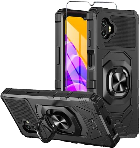 for Samsung Galaxy Xcover 6 Pro Phone Case with Tempered Glass Screen Protector,Military Grade Heavy Duty Shockproof Protective Cover,with Ring Kickstand for Xcover 6 Pro (Black)