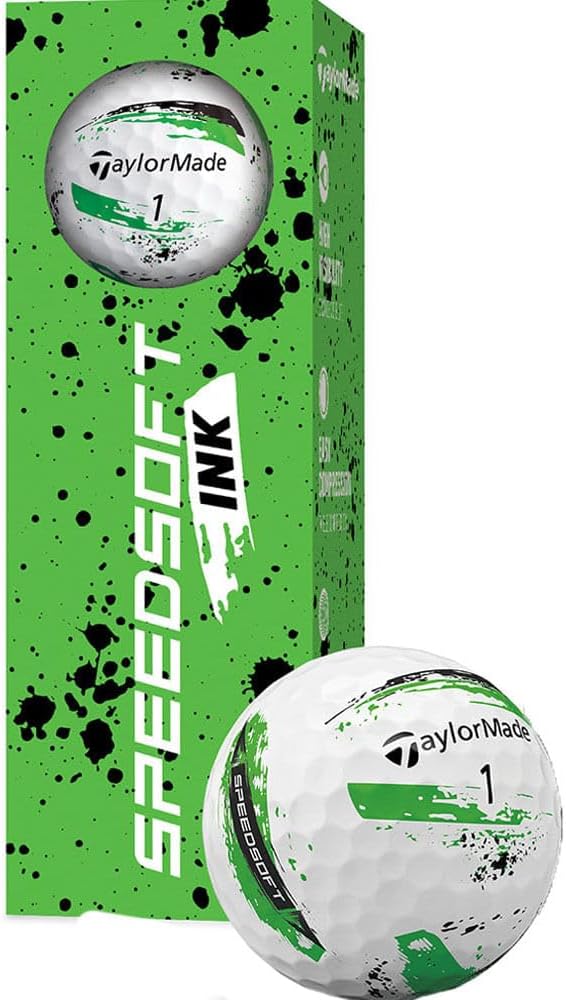 TaylorMade SpeedSoft Ink Golf BallsHIGH CONTRAST. SOFT FEEL.High visibility ink on a unique standout design with a solid alignment aid.Features:New PWRCORE - Faster core materials developed for additional distanceSoft Sub 50 Compression - Larger core for easy compression and soft feel322 Extended Flight Dimple Pattern - Low drag aerodynamic dimple design