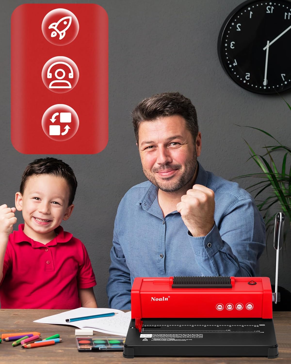 💯【Multiple Bindings in One Machine !】Noaln Upgraded Spiral Coil Binding Machine with Electric Coil Inserter helps to create professional-looking bound books in the office or at home quickly and easily. It's Vibrant Christmas Red look can be adapted to any home style for a touch of style and luxury. Make Documents, Contracts, Materials/Assignments, Teaching Books, Picture Books/Diary, Travel Tips/Notebooks, Photo Albums, Recipes, etc. It can also be a practical and educational gift!
