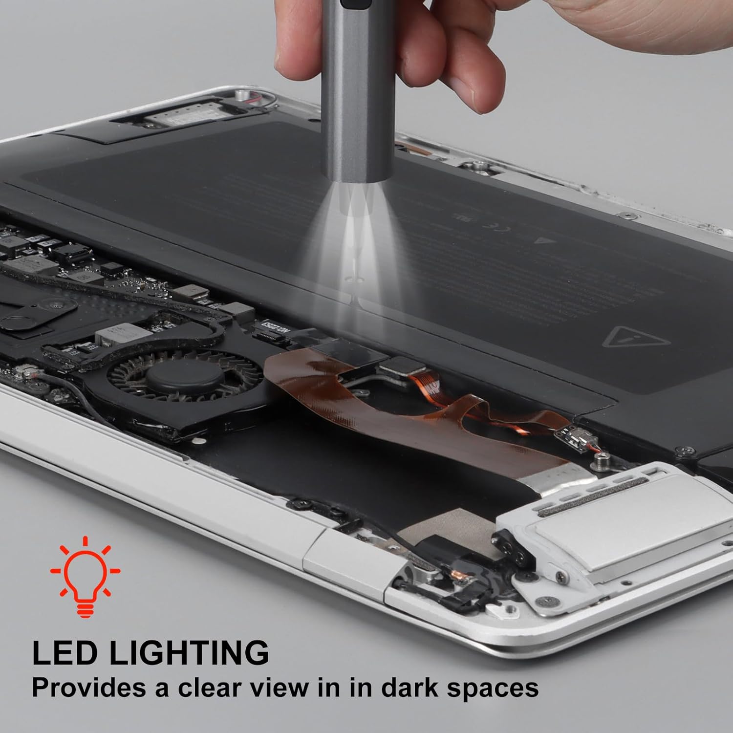 【Wide Application】This electric screwdriver kit equipped 24 precision bits - Phillips, Torx, Flat Head, Triwing, Hex, Pentalobe, Triangle and U-Type, along with magnetizer tool and opening picks, help you complete most tasks. All tools are neatly organized in a portable case, our precision screwdriver set electric allowing for repair tasks to be conducted at home or on-the-go.