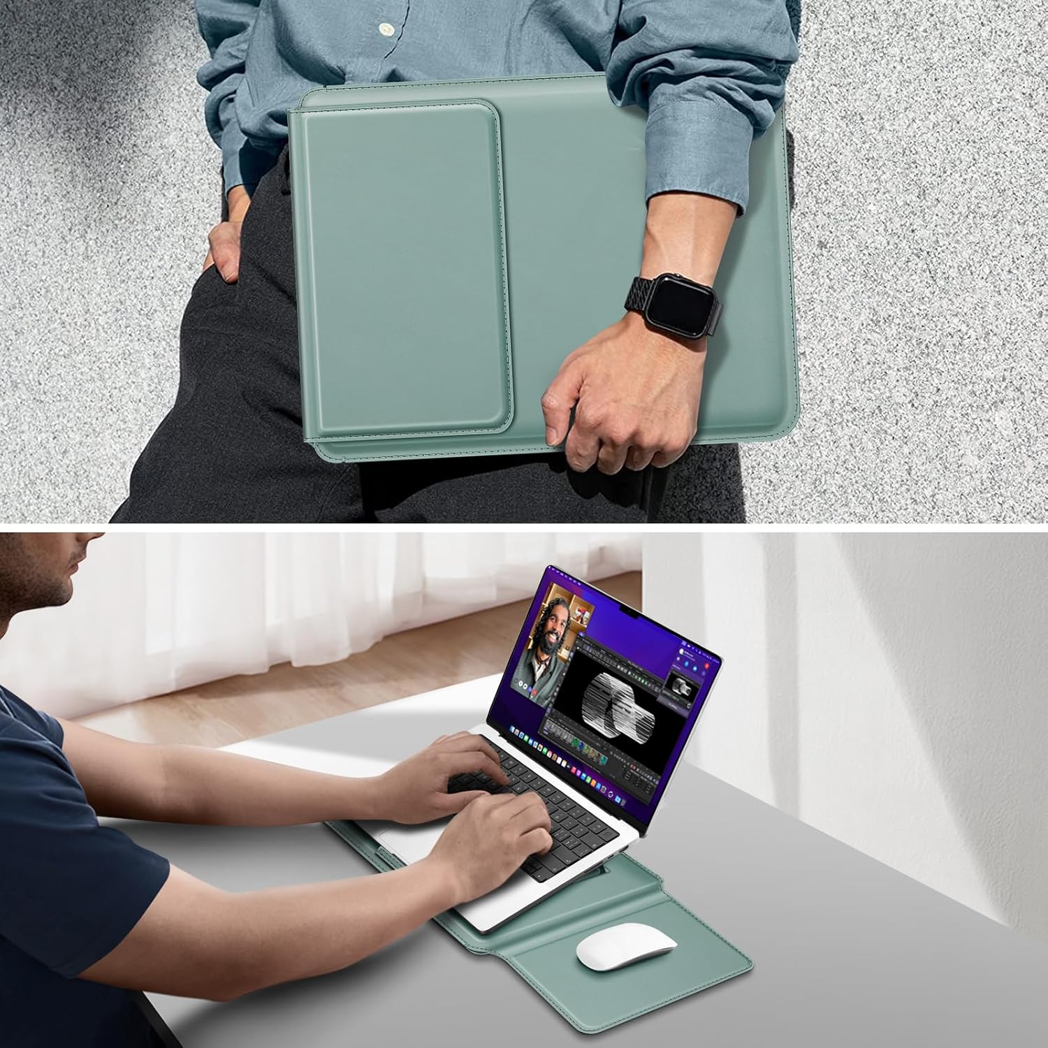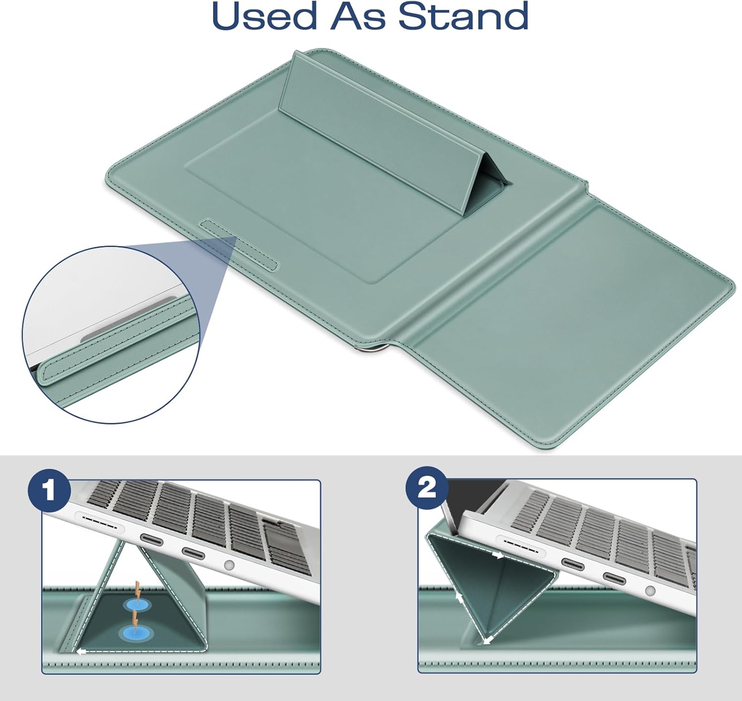 Fintie Sleeve Case for MacBook Air 13.6 A3240 A3113 A2681, Pro 14 A3401 A3185 A3112 A2992 A2918 A2779 A2442, MacBook Pro/Air 13 - PU Leather Slim Bag Cover with Stand Feature, Green