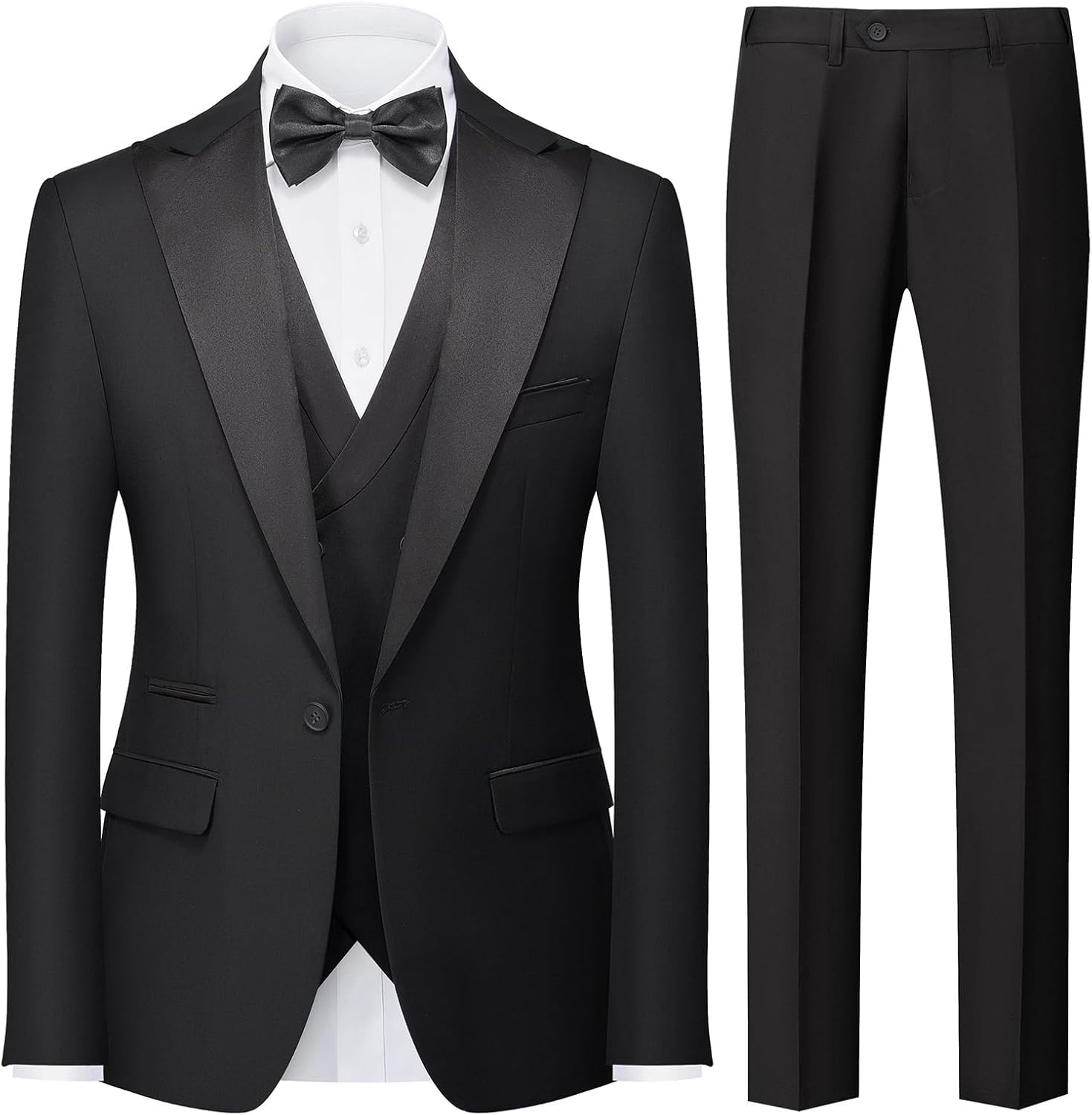 Rogers & Morris Tuxedo Suits for Men Solid 3 Piece Slim FitFormal Set Peak Lapels One Button Jacket Vest Pants