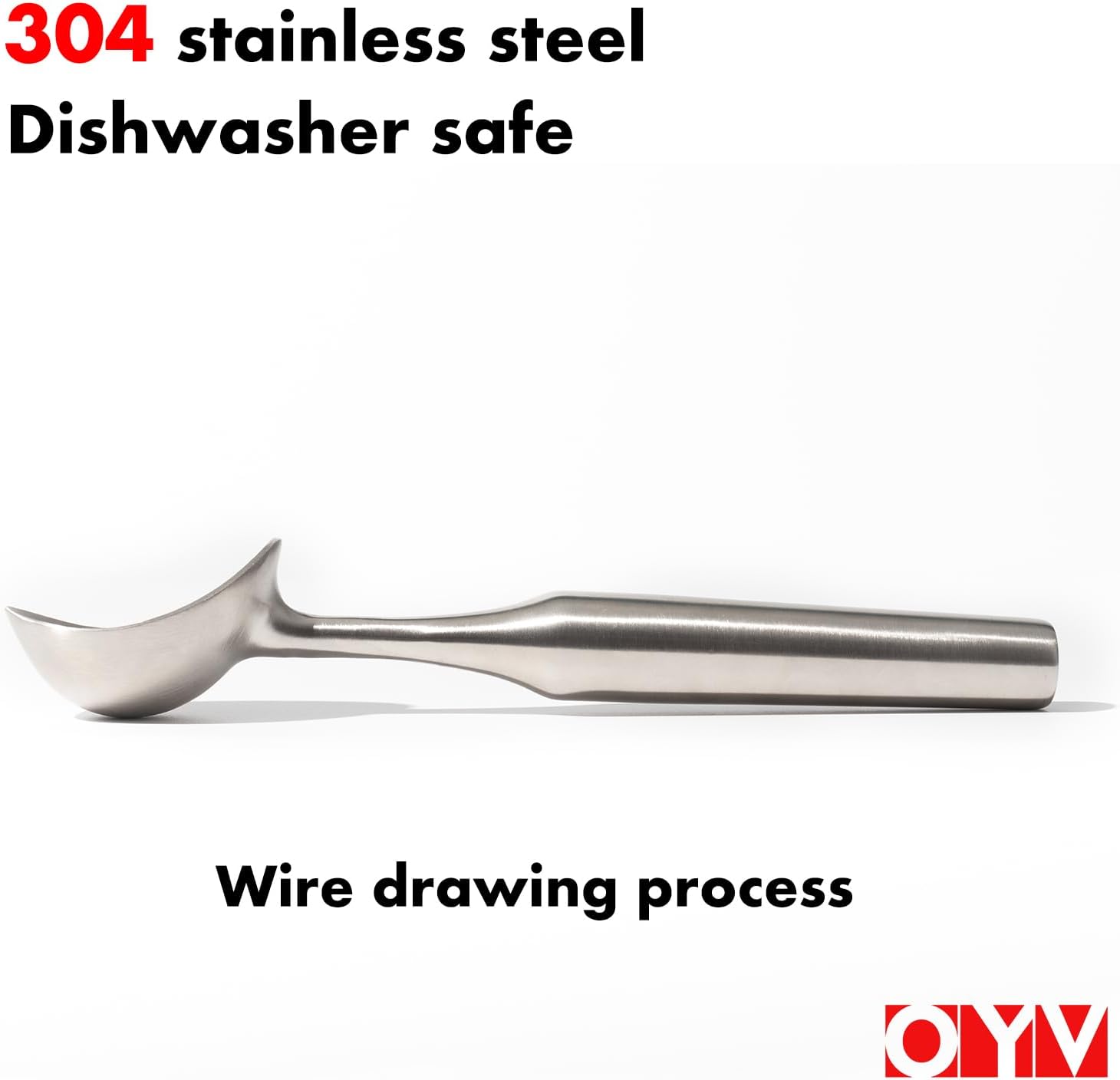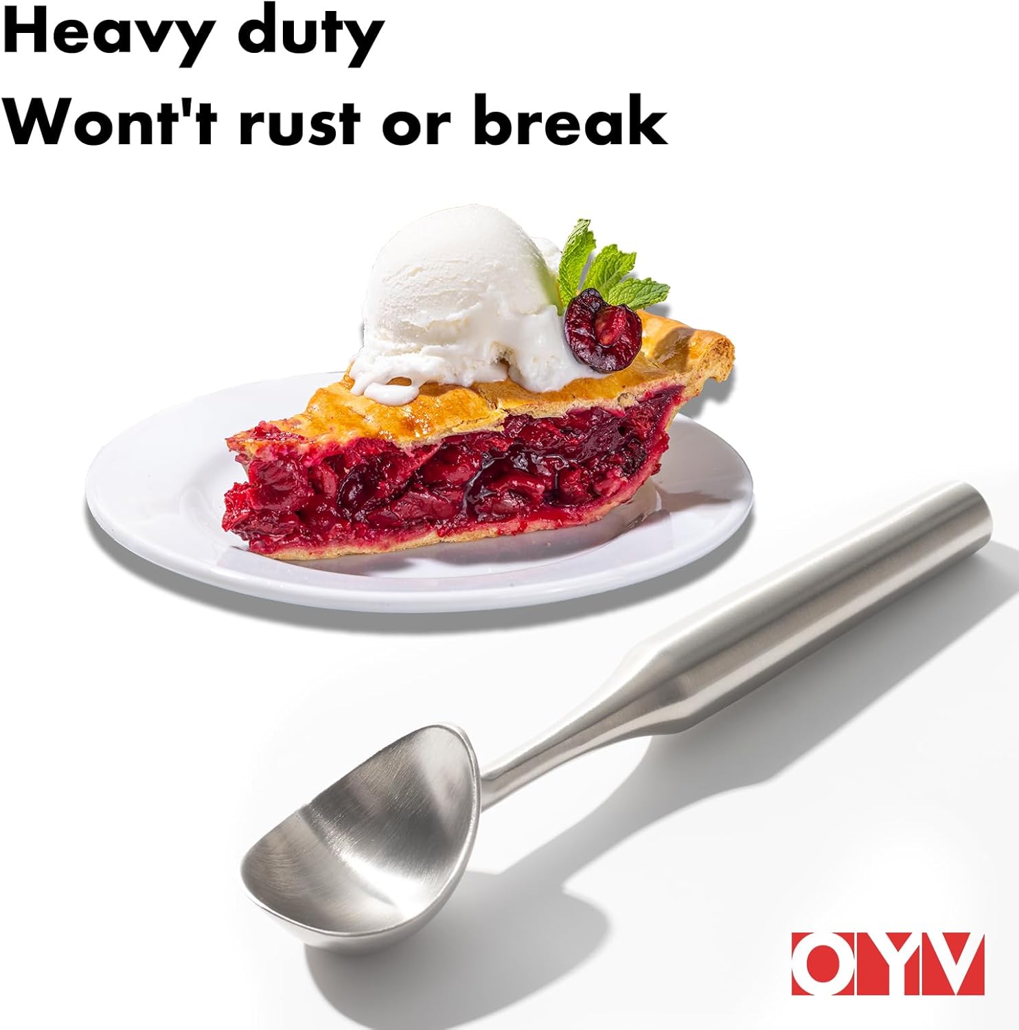 YOUR ULTIMATE ICE CREAM SCOOP: Crafted with solid stainless steel construction, the OYV ice cream scoop boasts a seamless one-piece design, ensuring exceptional durability and resistance to bending or breaking under pressure