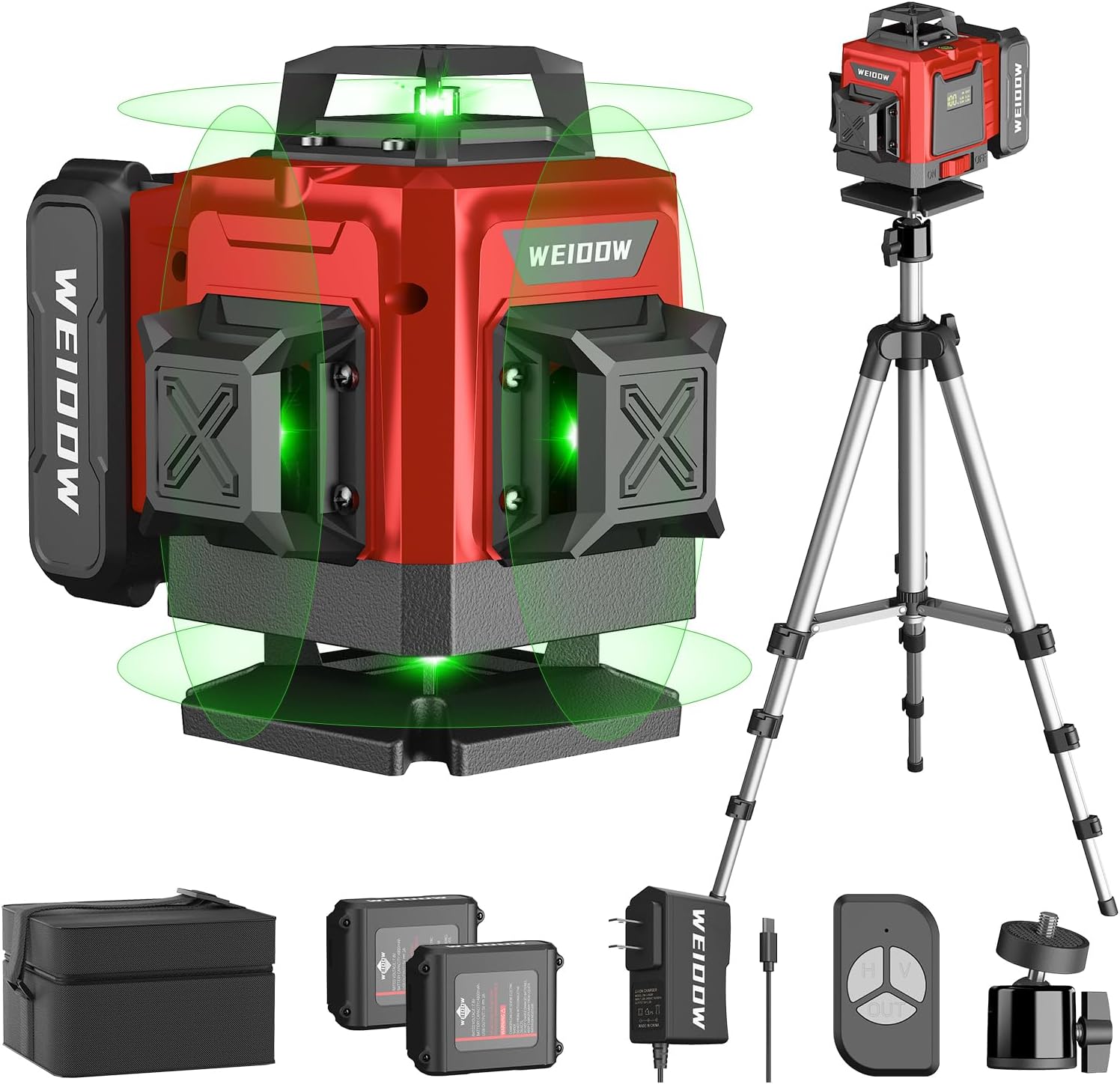 Nivel láser 360 de autonivelación con trípode, WEIDDW 4D Lazer Level, 4x360° Línea láser cruzada para proyecto de construcción renovación, piso de baldosas, herramienta de nivel láser, caja duradera