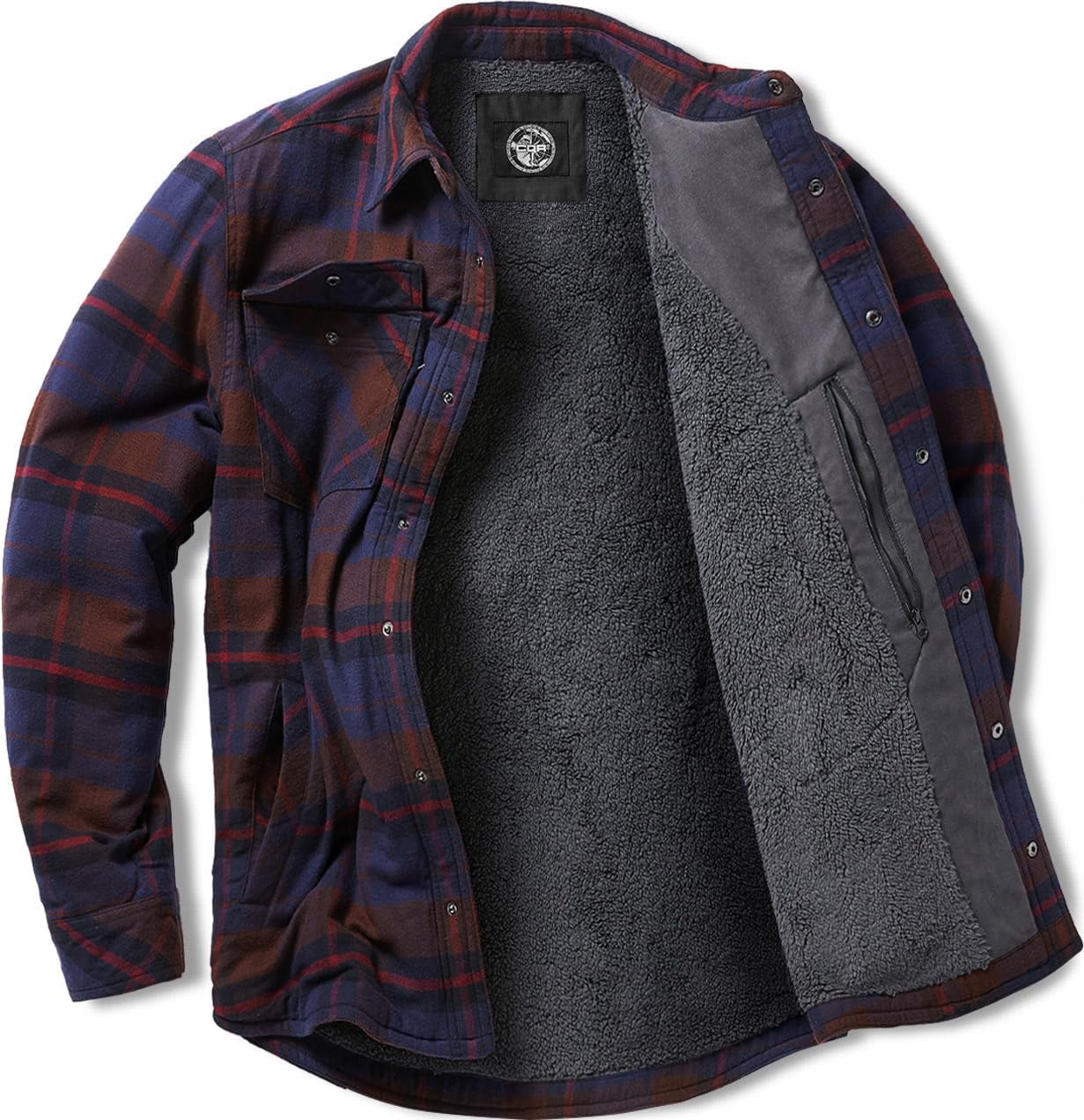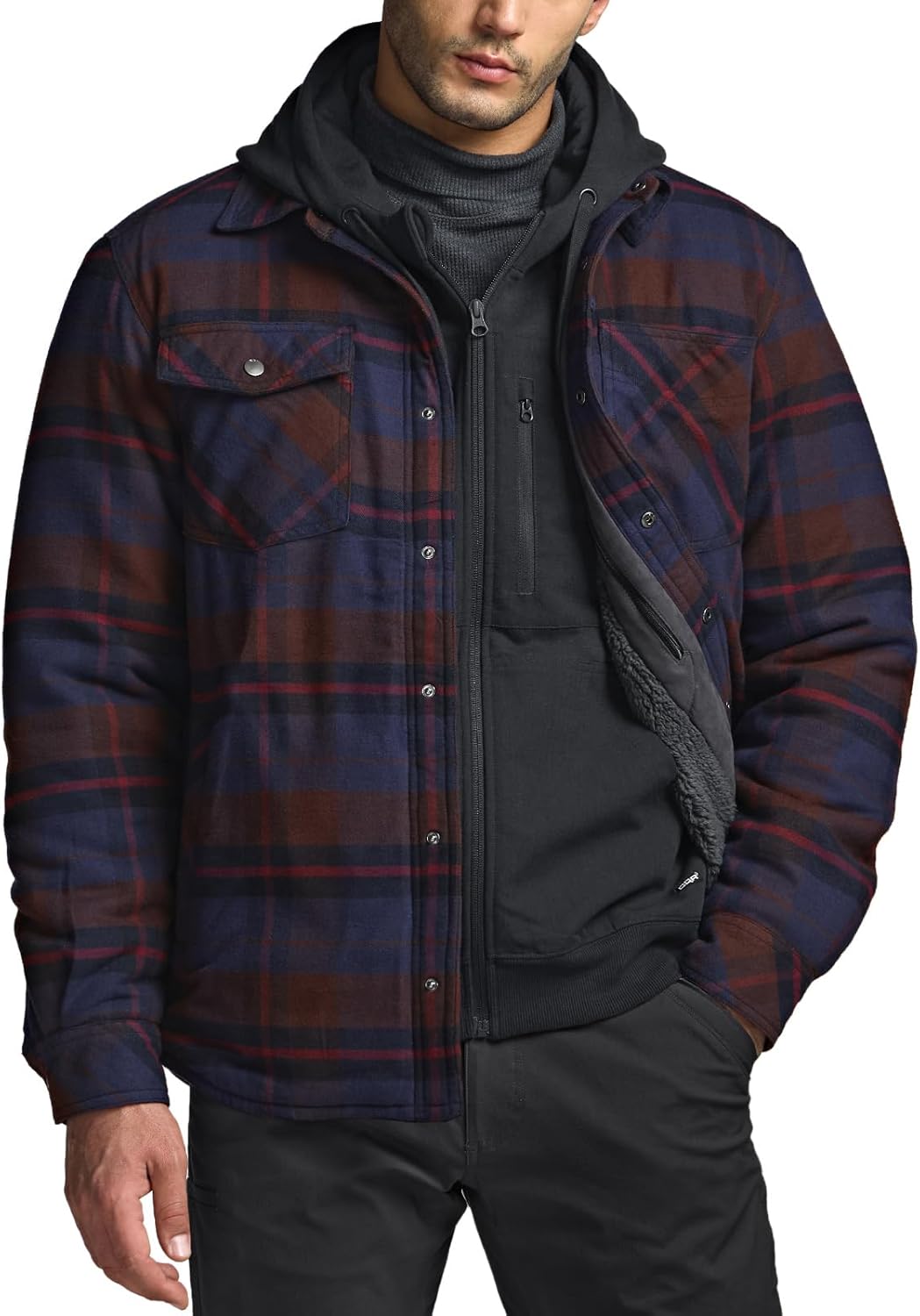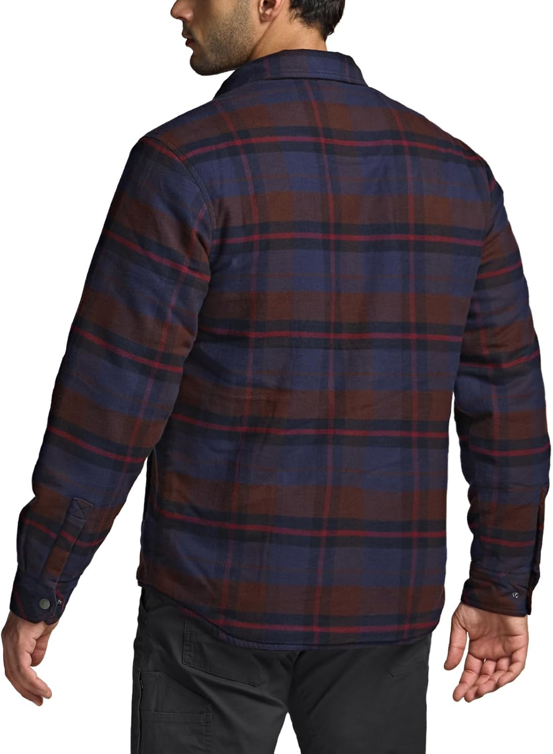 CQR Men's Plaid Flannel Shirt Jacket, Long Sleeve Soft Warm Sherpa/Quilted Lined Jacket, Outdoor Button Up/Zip-Front Jacket