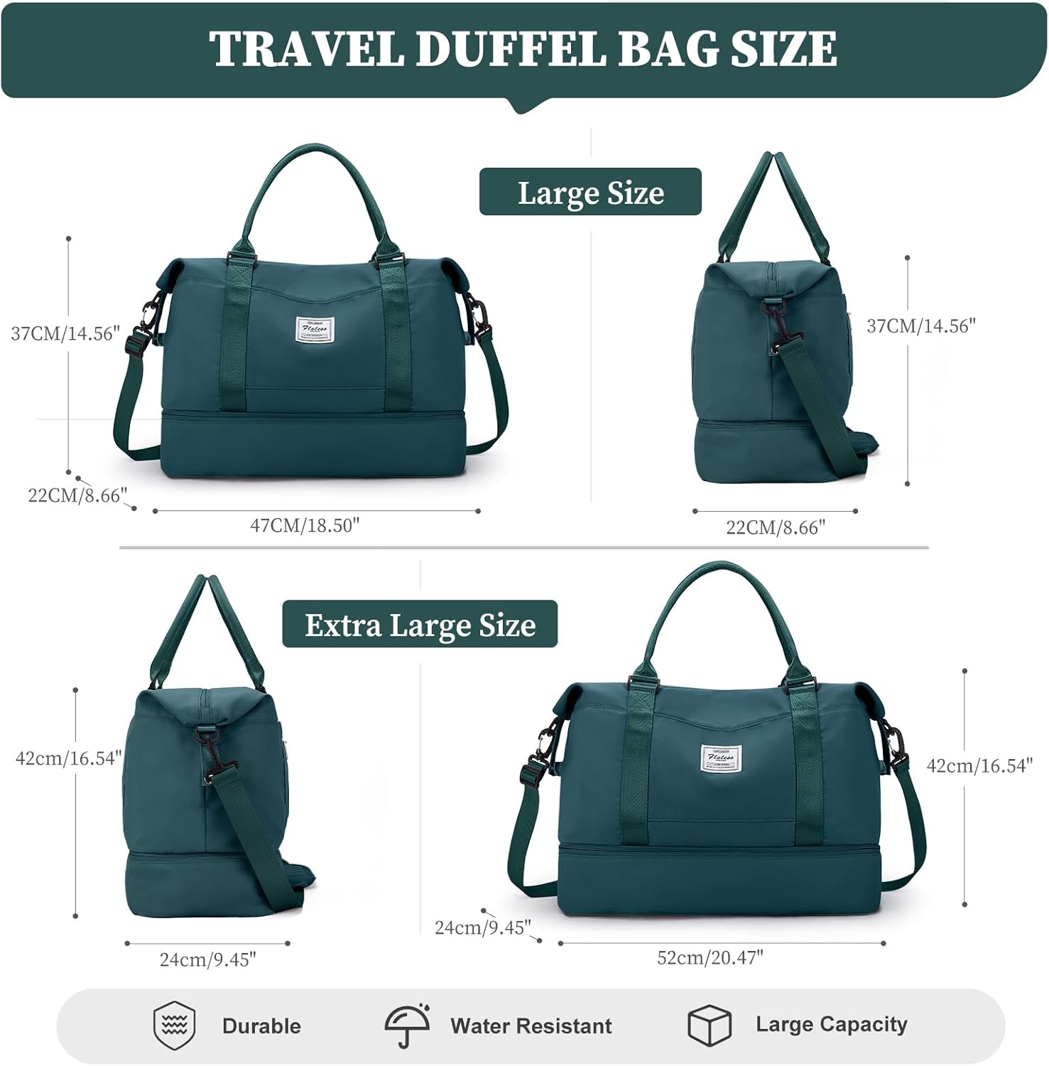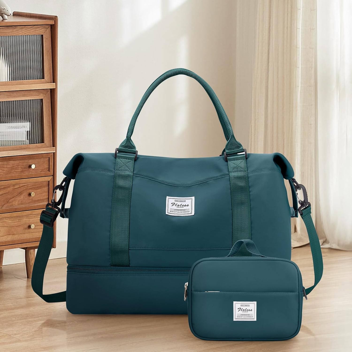 Weekender Bags for Women,Overnight Travel Duffel Bag with Shoes Compartment& Toiletry Bag,Extra Large(Peacock Blue)