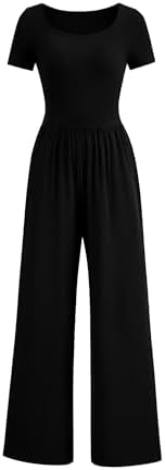 PRETTYGARDEN Women's Summer One Piece Jumpsuits Dressy Casual Short Sleeve Square Neck Wide Leg Jumpsuit Rompers