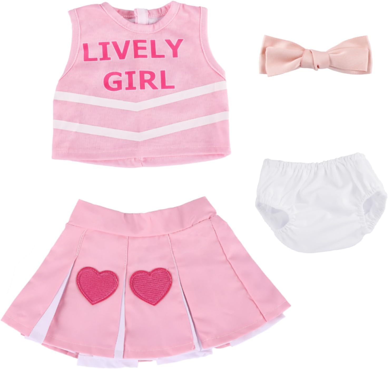 BABESIDE 4 Piezas Conjunto de Ropa para Muñeca Reborn, Falda de Patrones de Corazón con Pinza de Pelo y Pañal para Muñecas de 17-22 Pulgadas Niña, Accesorios Realistas para Muñecas Reborn, Rosa
