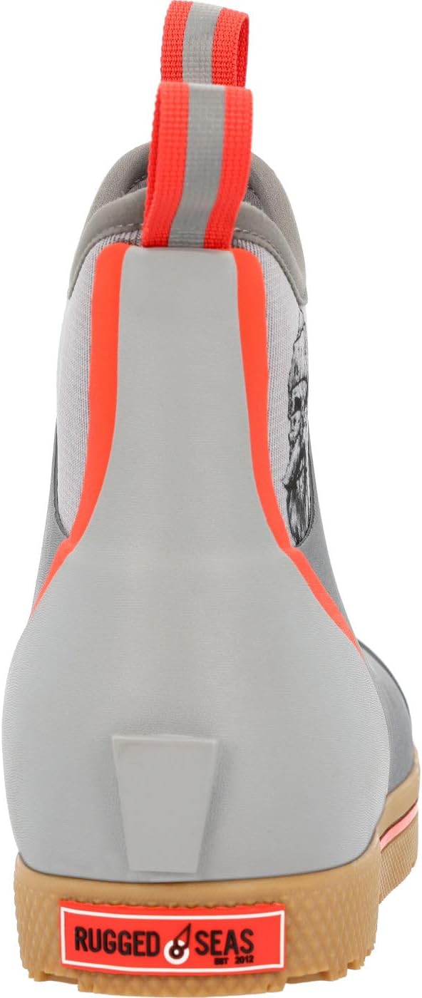 The XTRATUF Wheelhouse fits the bill for a commercial grade version of the Ankle Deck Boot. When you are on your feet 12 hours or more, feet often will swell. This boot has a wider fit to address this issue and keep you comfortable. The 6-inch upper is reinforced in high wear areas, such as the toe and heel, for maximum durability. This boot features an EVA/PU blend insole for all-day comfort, and an oil resisting, SRC-rated flat outsole for excellent traction.And the new Rugged Seas edition connects the rich commercial fishing history in Alaska and Maine with special design elements and custom printed insoles.