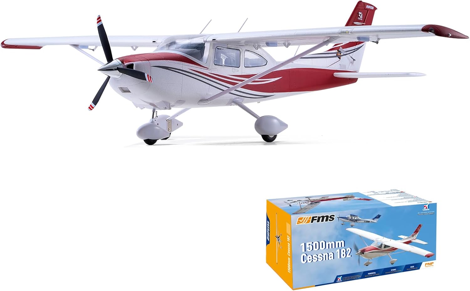 Fms Rc Planes for Beginners Remote Control Airplane for Adults Single-Engine Propeller Airplane 1500MM Cessna 182 Red 6 Channel Hobby Rc Airplanes PNP (No Radio, Battery, Charger)