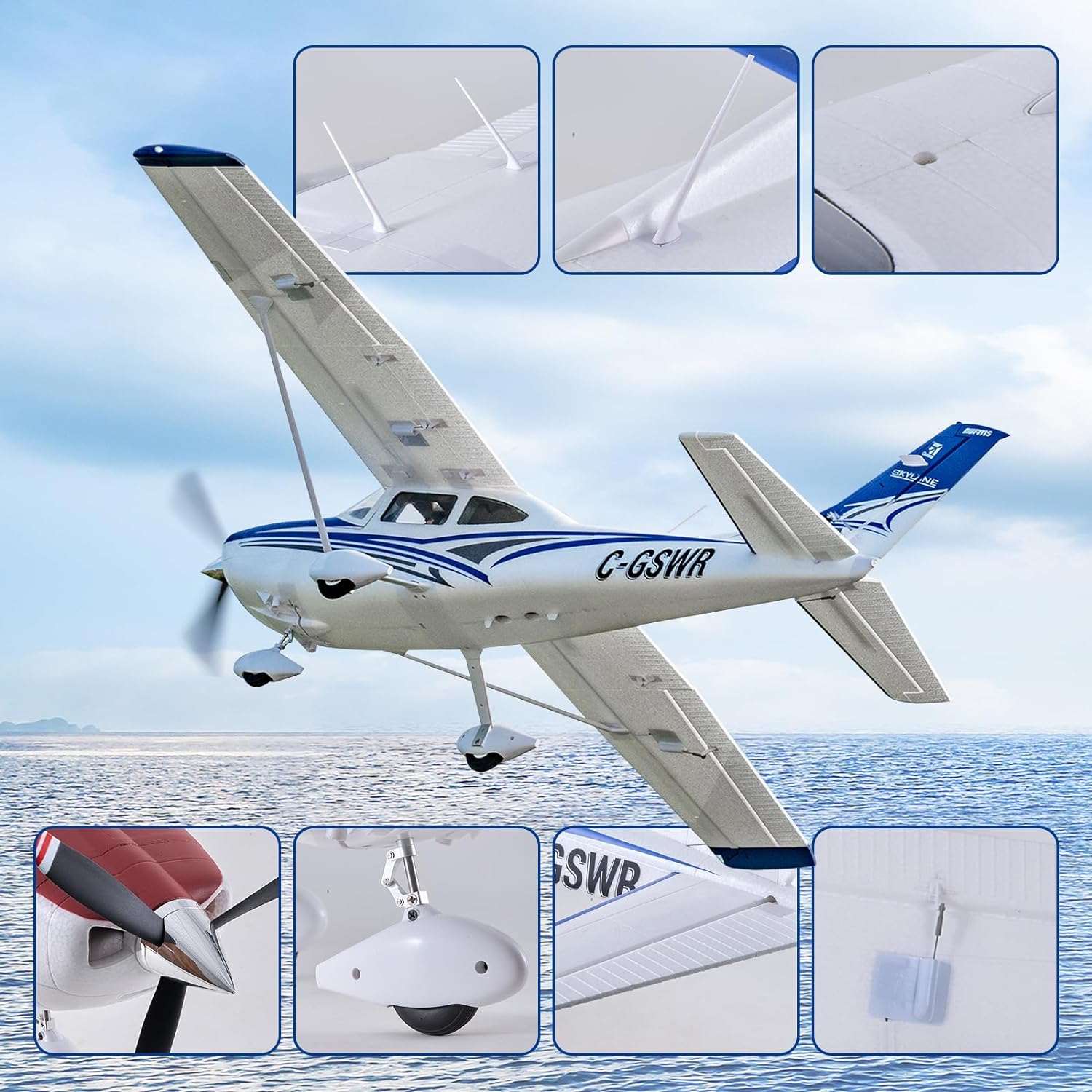 Convenient Installation⚙️: The Cessna 182 adopts a convenient snap-lock assembly structure, integrated wing insertion, and ball head servo linkage (pre-installed), ensuring plane strength and stability while greatly simplifying assembly steps, allowing users to quickly get started and enjoy flying fun in the shortest time possible.