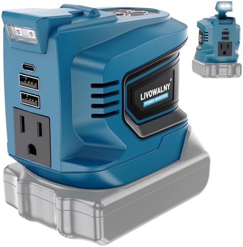 Real 200W Power Inverter Compatible With Makita, DC 18V to AC 110-120V Battery Inverter, LIVOWALNY Portable Power Station Generator, Charger Adapter Battery Powered with 2 USB & 1 Type-C & 1 AC Outlet
