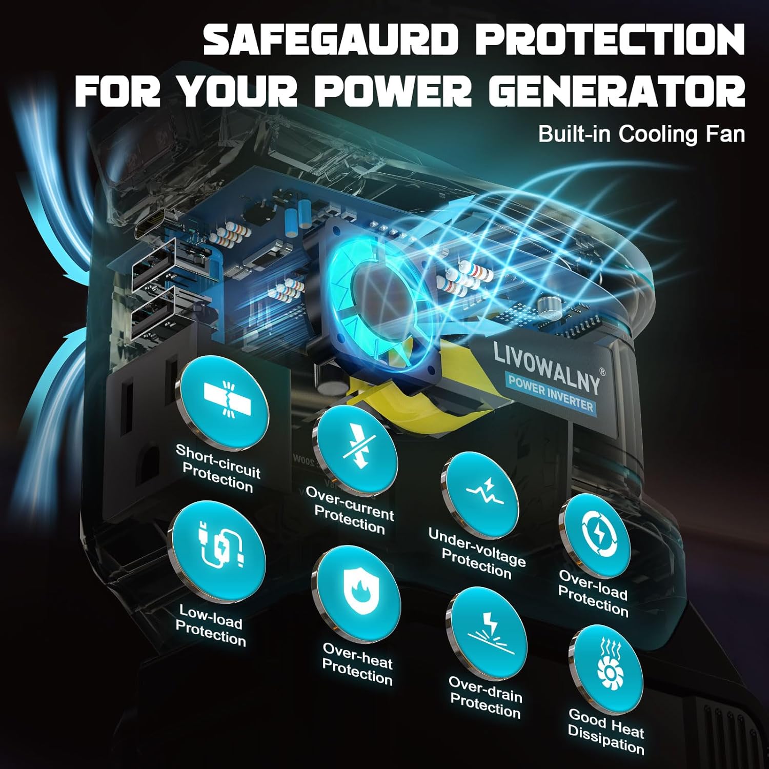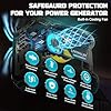 【Safety and Stability】——Enhanced with a compact fan and ventilation openings to improve heat dissipation, this power station offers protection against short-circuits, over-current, under-voltage, low-load, over-heat, over-voltage, over-load, and over-drain situations.