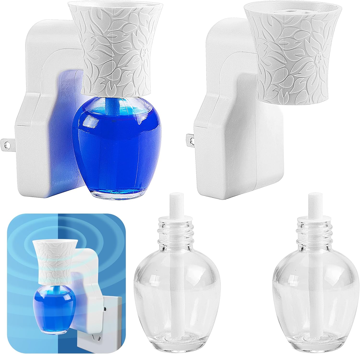 Sufficient Quantity: You will received 2 pcs wallflower plug in diffuser and 2 pcs 30ml empty bottles, you can add any fragrance into the bottles, enjoy a continuous fresh fragrance in your home, creating a pleasant and relaxing atmosphere and improving your sleep quality.