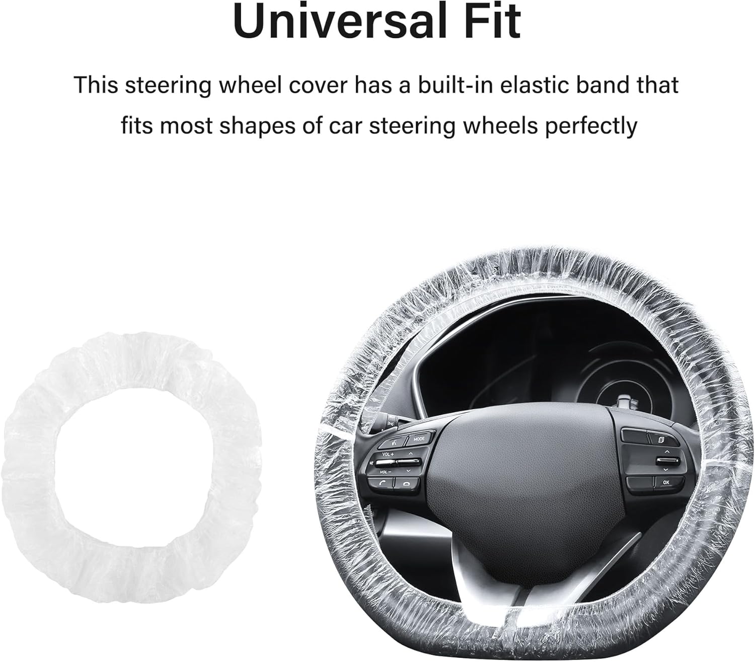 100PCS Disposable Steering Wheel Covers,Disposable Steering Wheel Protector with Elastic for Avoiding Scuffs & Scratches,Universal Car Steering Wheel Cover Car Accessories
