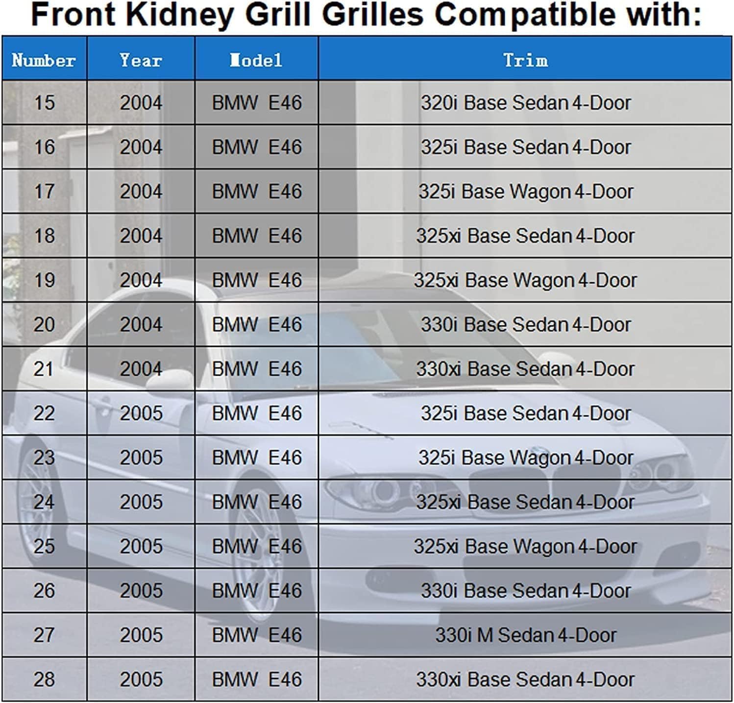 Front Kidney Grill Grilles Compatible with BMW E46 3 Series 4-Door 320i 325xi 325xi 330i 330i 330xi Car Front Hood Kidney Grill Grilles - Glossy Black