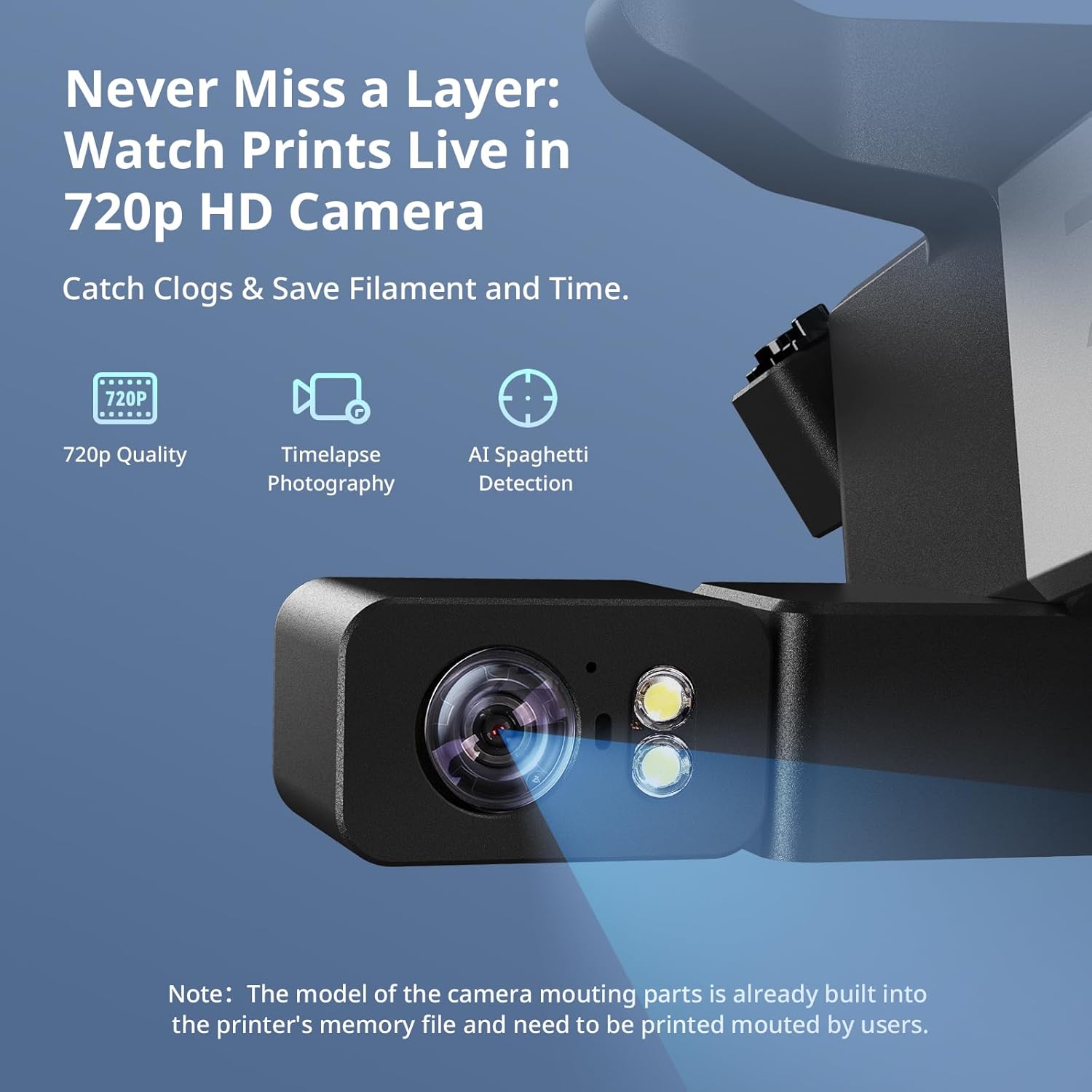 【Built-in 720p Camera for Remote Monitoring】Watch prints in real time with HD streaming, check progress from anywhere, and share stunning time-lapse videos
