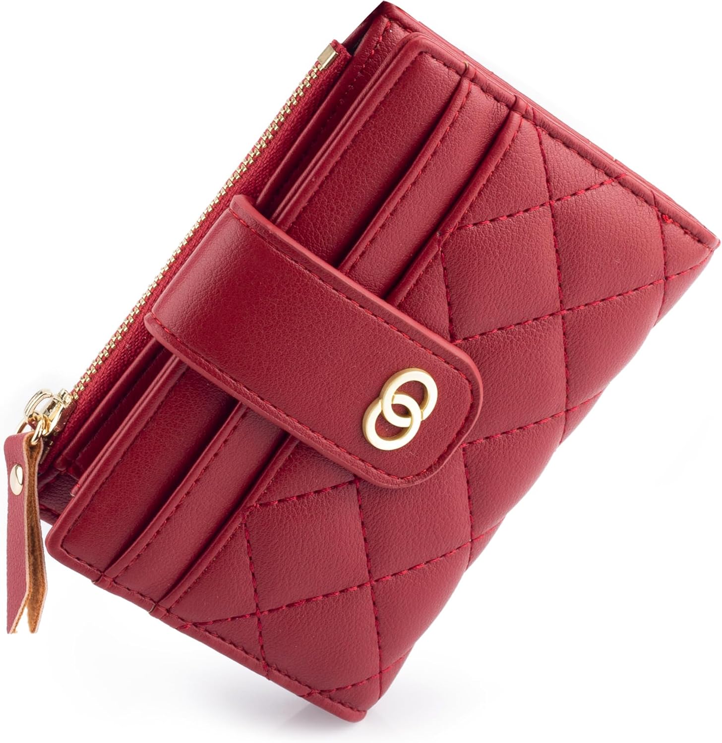 Small Red Wallets for Women Soft PU Leather RFID Blocking Credit Card Holder Zip Coin Pouch Slim Womens Wallet