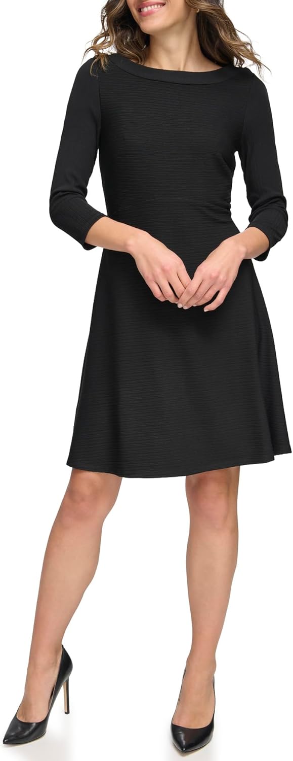 Tommy Hilfiger Women's 3/4 Sleeve Silky Rib Knit Boat Neck Dress