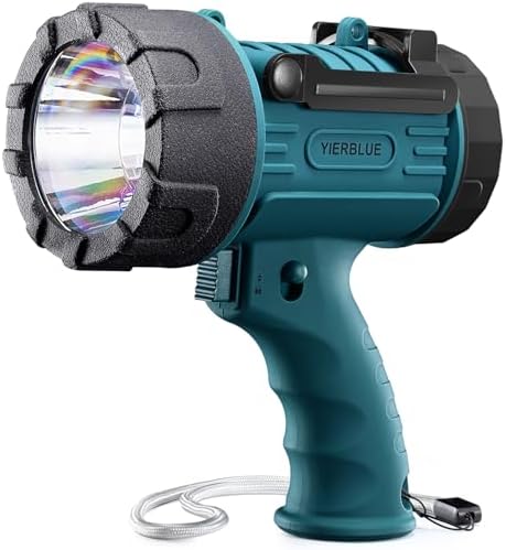 Linterna de Faro Recargable YIERBLUE IP67 a Prueba de Agua con LED de 1000 Lumen, Faro de Luz de 12 Horas de Duración, Faro Manejador Resistente a Impactos con Soporte Plegable y Lente Roja Desmontable