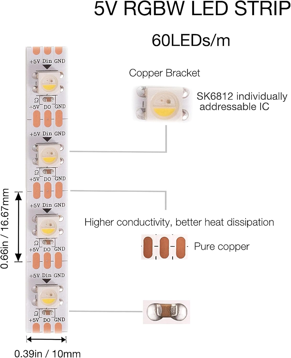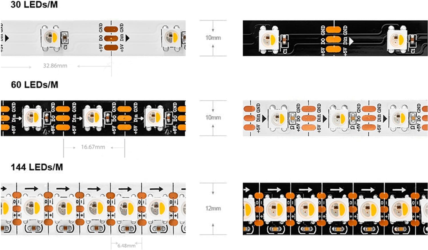 SK6812 RGB+Neutral White Led strip light is individually addressable pixel LED strips, any IC controls one LED. Each pixel can have its own colour and brightness. Each LED can be separated without damaging the rest of the strip. You can short, extend or bend the strip as you like.