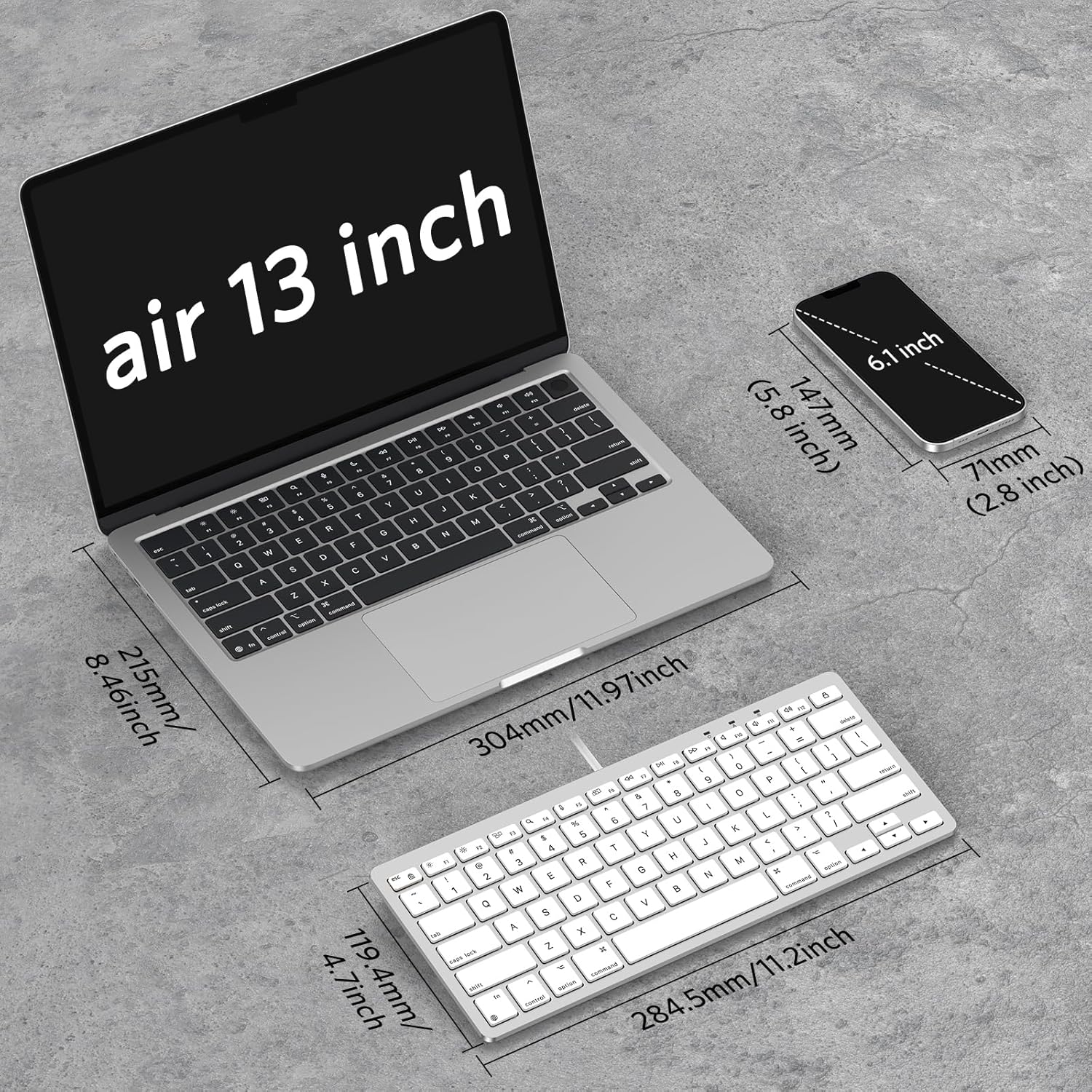 Estilo y Portabilidad: Con dimensiones de 11.2 in x 4.7 in(284.5 mm x 119.4 mm),su diseño elegante es perfecto tanto para el trabajo diario como para viajar