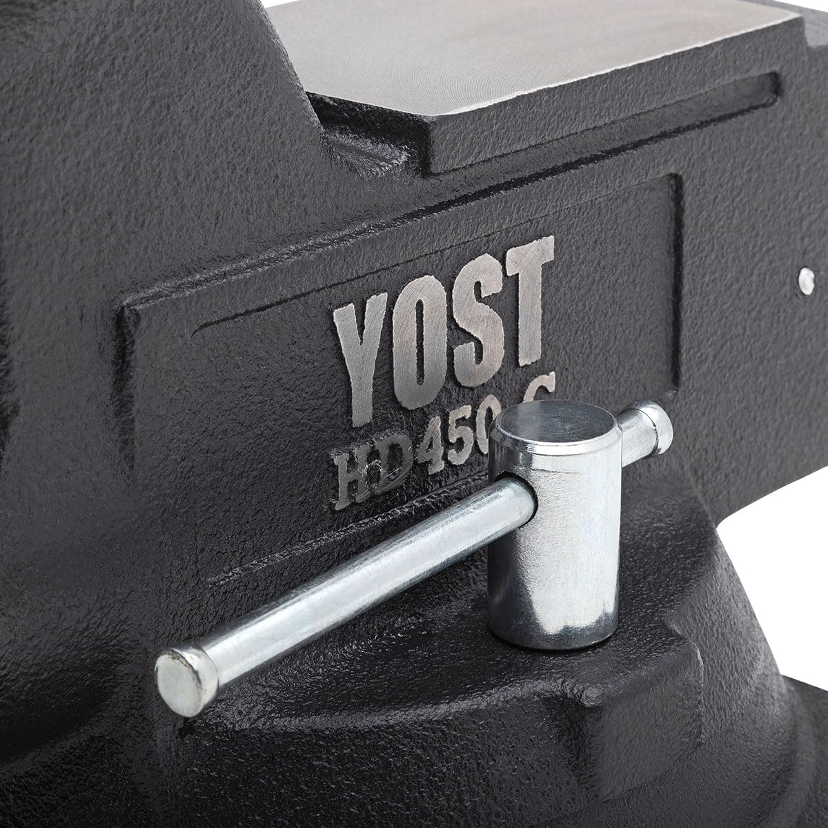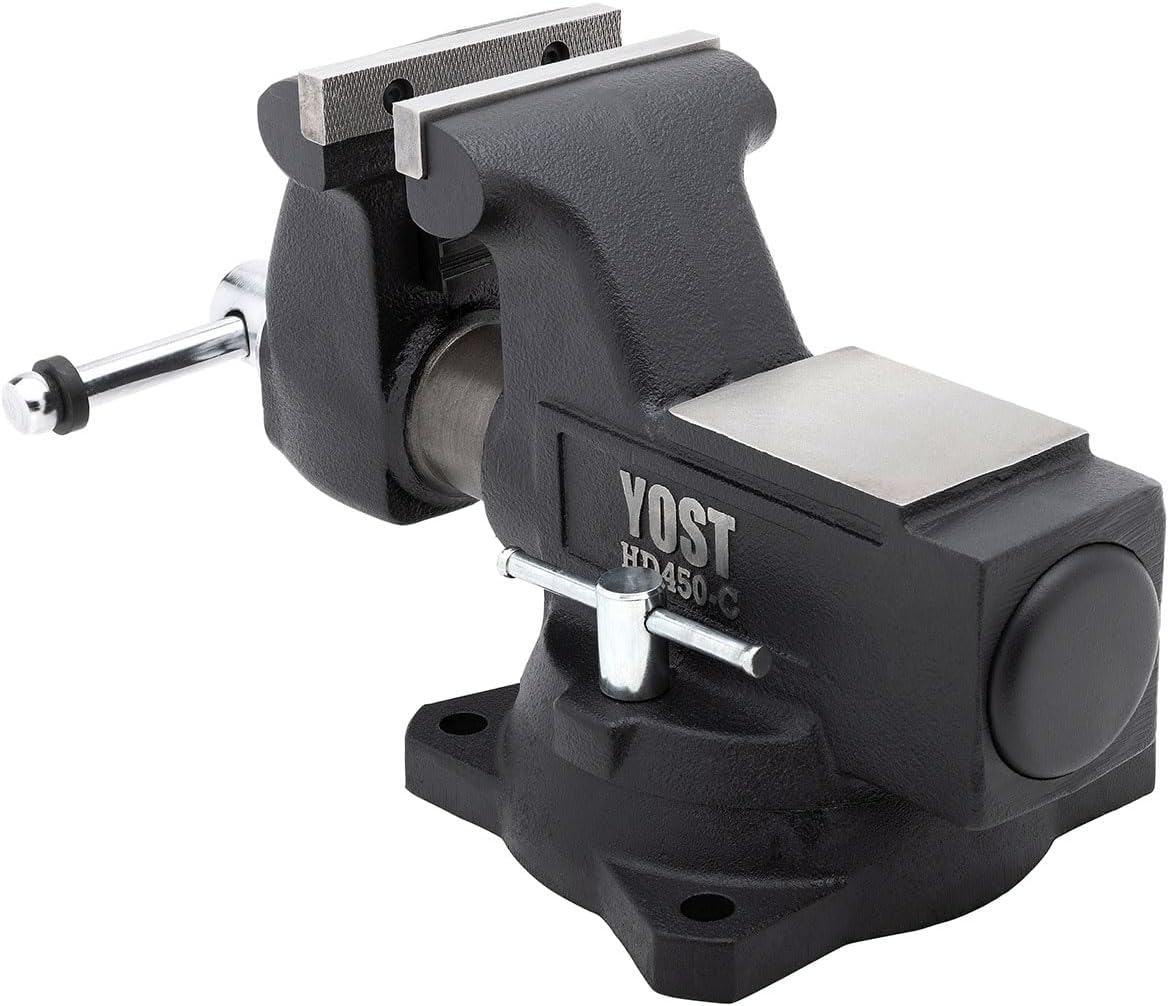 Yost HD450-C Heavy Duty 4-1/2 Inch Mechanics Work Bench Vise | Heavy Duty Woodworking & Metal Work Table with Secure Grip Swivel Base | 60,000 PSI Casting Iron Material with Extra-large Anvil Surface