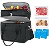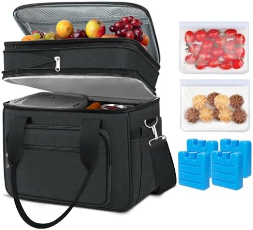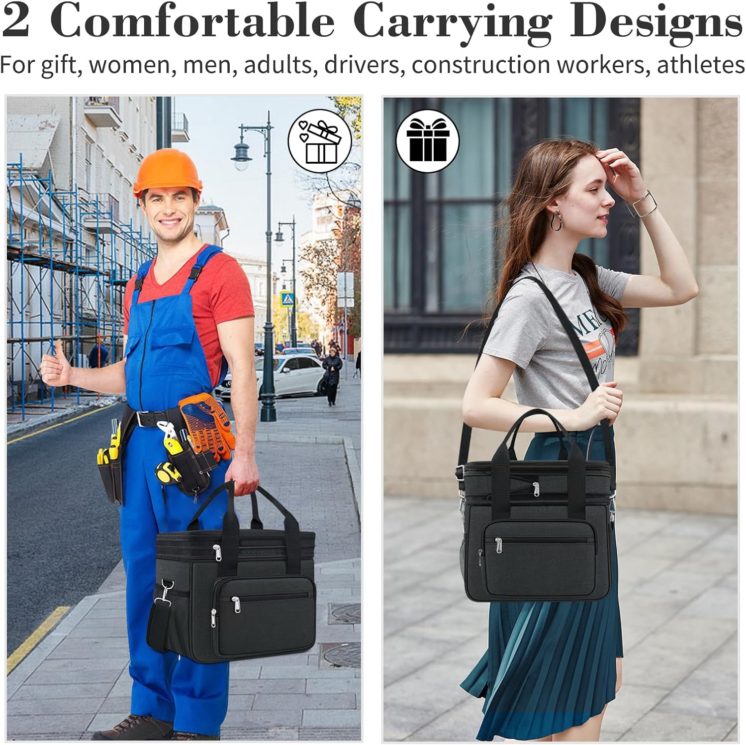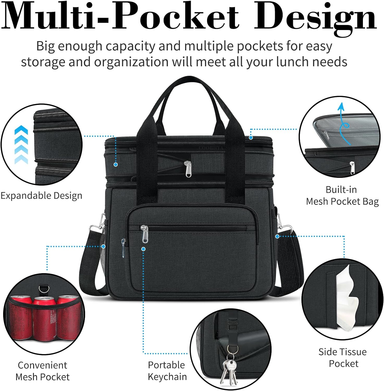Coobiiya Lunch Box for Men Expandable Lunch Bag, 23L Large Cooler Lunch Box, Insulated Lunch Bag for Work/Adult with 4 Ice Packs&2 Snack Bags Double Deck Leakproof Heavy Duty bags for Women- Black