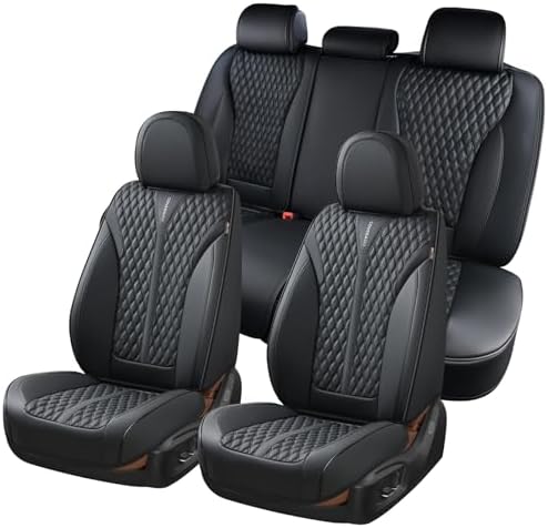 Coverado Car Seat Covers Full Set, 5 Seats Luxury Nappa Leather Seat Covers for Cars, Car Seat Cover Waterproof, Front and Back Car Seat Protector, Black Car Seat Covers Universal Fit for Most Cars