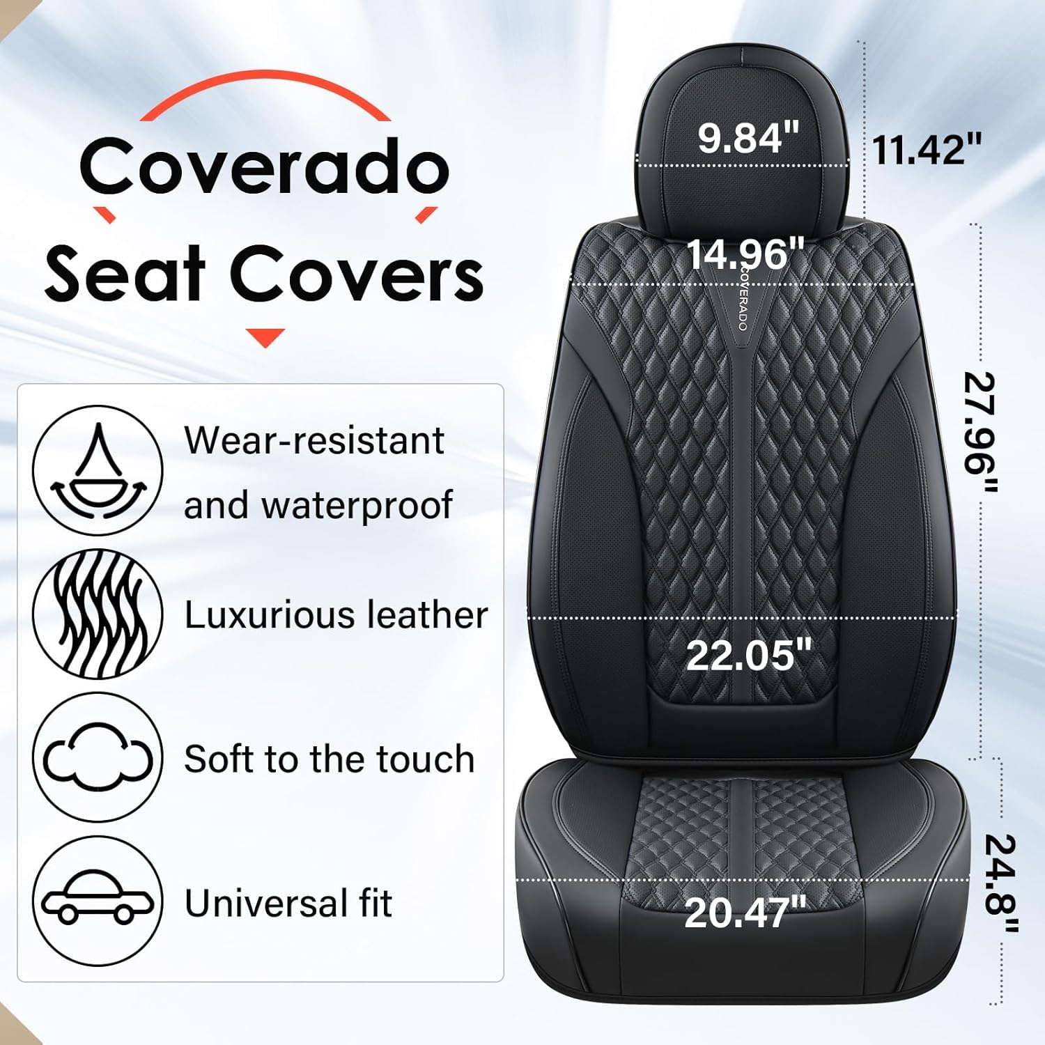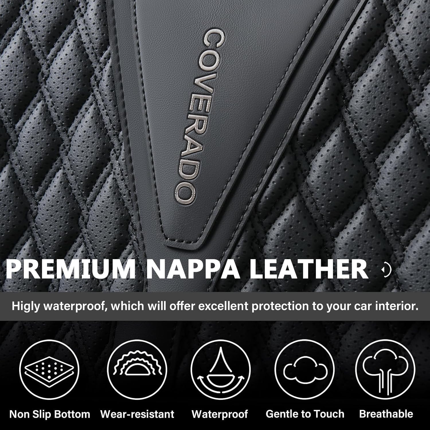 BREATHABLE LEATHER : Coverado seat covers are made of perforated nappa leather craftsmanship and durable faux leather with high resilience density foam padding. These leather seat covers are not only stylish, but also breathable and skin-friendly. They stay dry and cool even on hot summer days, keeping you away from stuffiness and discomfort.