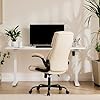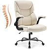 Sweetcrispy Ergonomic Office Chair Heavy Duty Task Desk Chair with Flip-up Arms, PU Leather, Adjustable Swivel Rolling Chair with Wheels, Beige