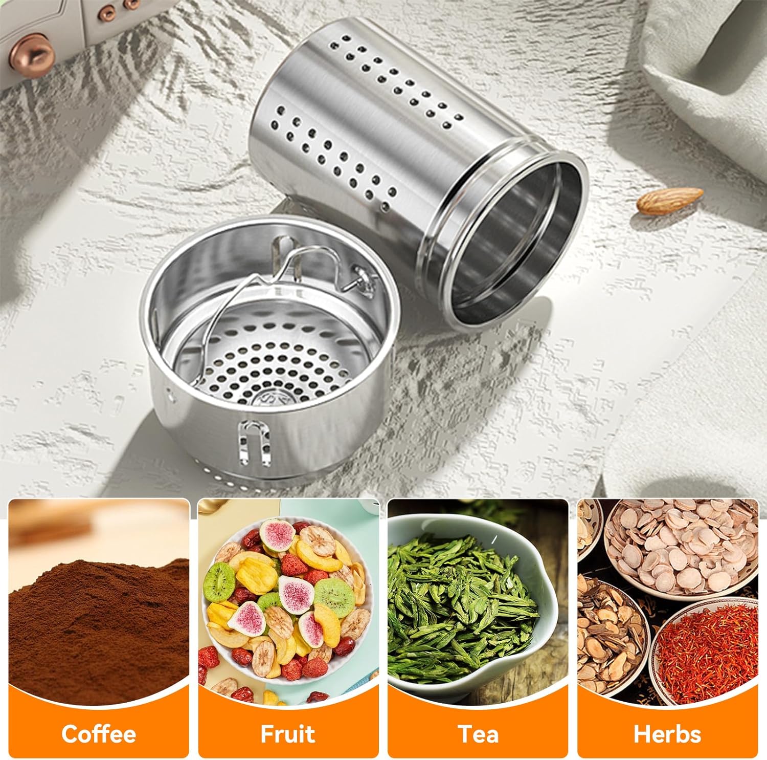 【One Touch Lock & Self-Contained Cup】 One button press to open the lid of our tea cup with infuser and lid, built-in leak-proof inner plug, all-around sealing leak-proof, to ensure that there will be no leakage under any circumstances. non-slip bottom of the cup, the lid is a water cup, convenient to drink anytime.