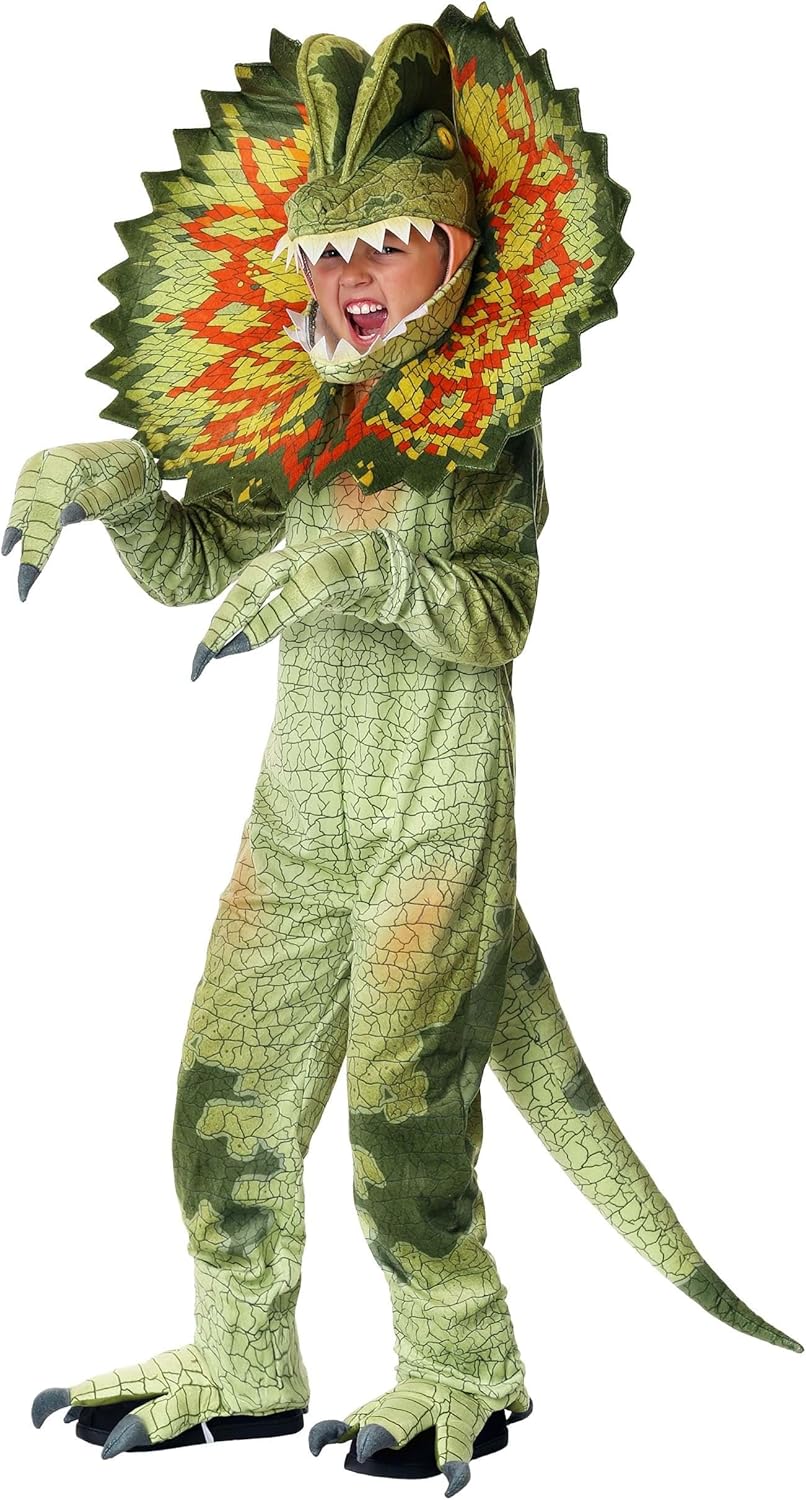 Fun Costumes Realistic Dilophosaurus Costume for Kids - Dinosaur Jumpsuit for Boys - Child Jurassic Cosplay Outfit