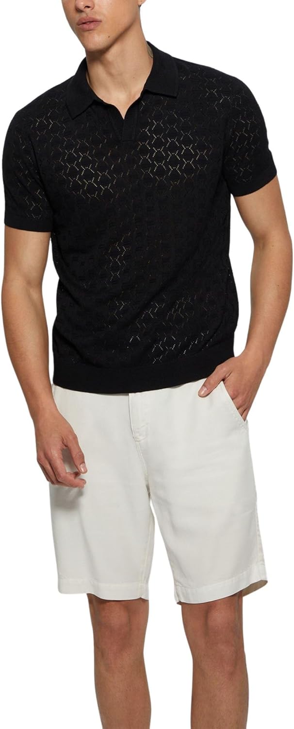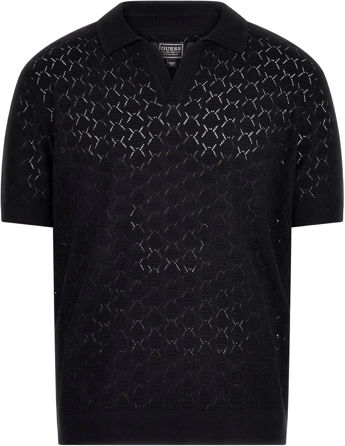 GUESS Men's Eco Short Sleeve Pointelle Stitch Brian Polo