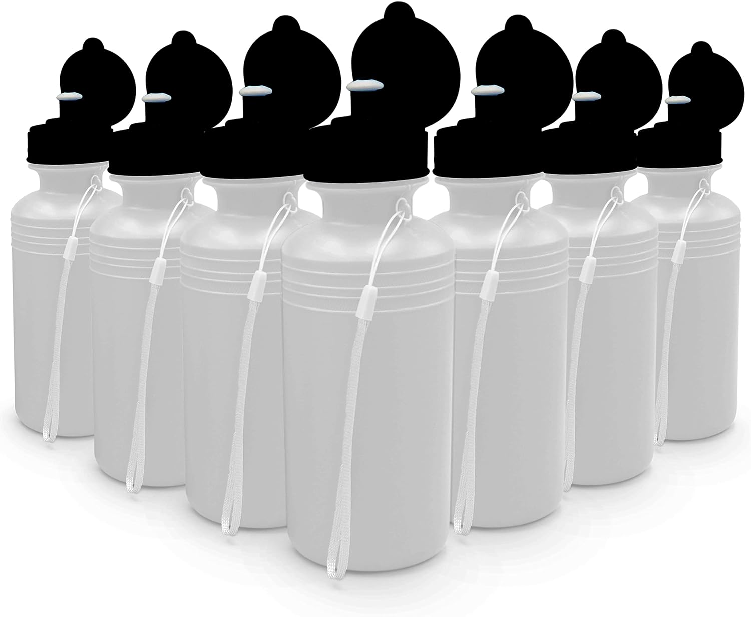 22 PACK - 18 oz Sports Water Bottles Bulk, Small sized reusable water bottles bulk. Great for kid water bottles for boys, girls, & toddlers. White colored water bottles can be personalized.