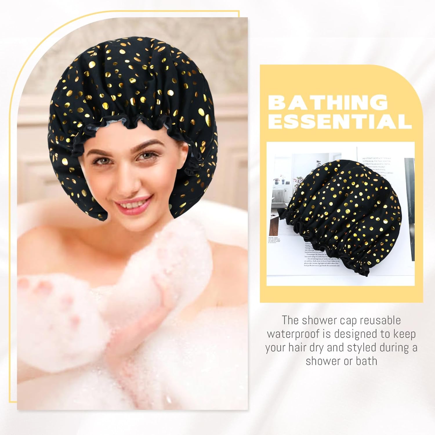 Waterproof & Reusable Material: The Lawie shower cap reusable waterproof is designed to keep your hair dry and styled during a shower or bath. Made of satin and PEVA, it's lightweight, portable, and environmentally friendly.