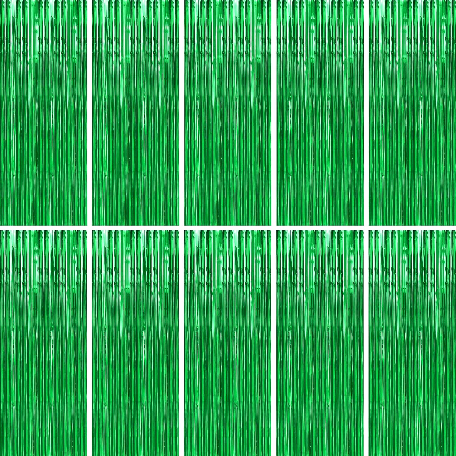 BTSD-home 10 Pack Green Foil Fringe Curtain, Metallic Photo Booth Backdrop Tinsel Door Curtains for St Patricks Day Birthday Bridal Baby Shower Bachelorette Christmas Party Decorations(8ft x 3ft)