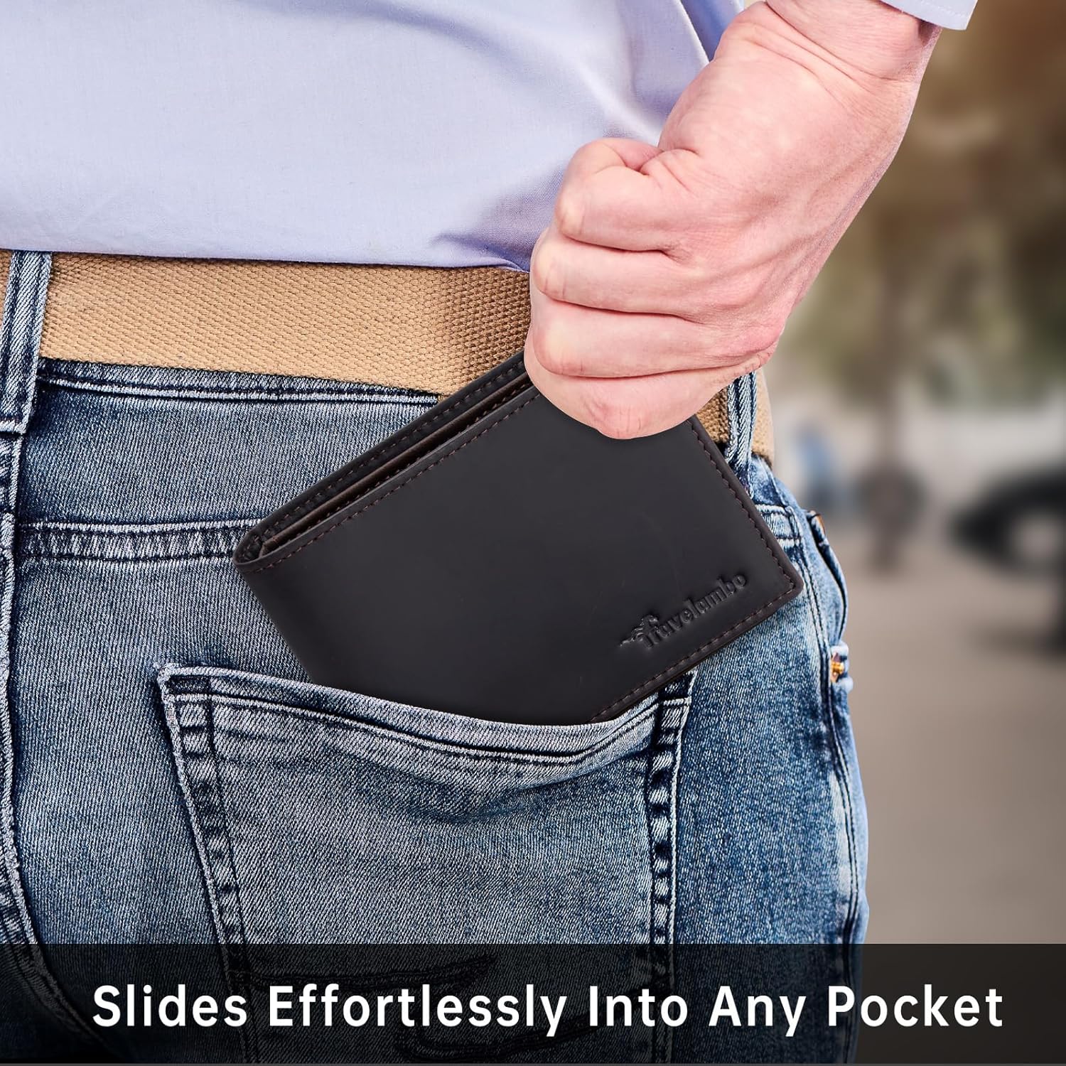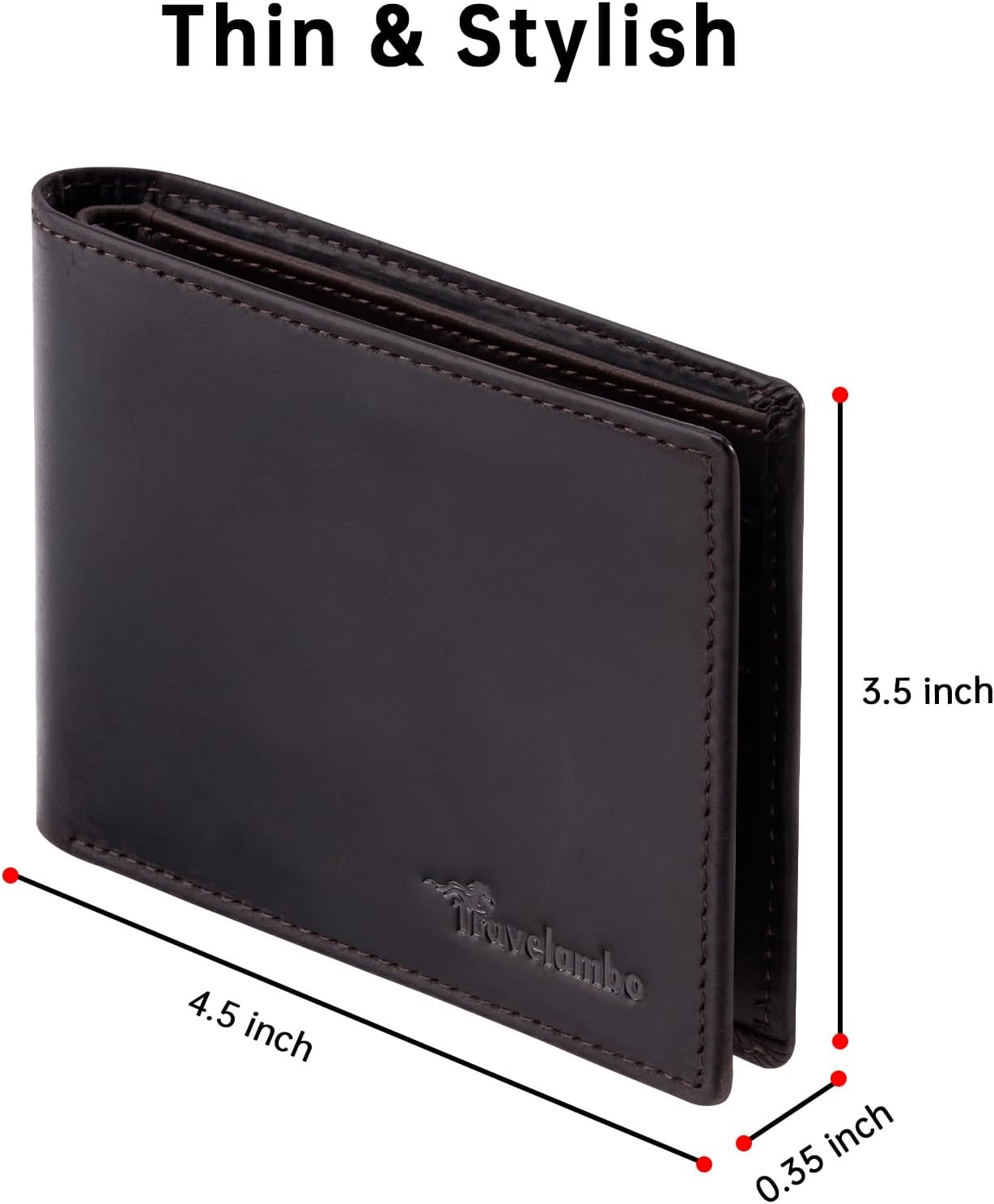 Travelambo Wallet for Men Real Leather Mens Bifold Wallet RFID Blocking - Thin & Stylish with ID Window in Gift Box (Crazy Horse, Coffee)