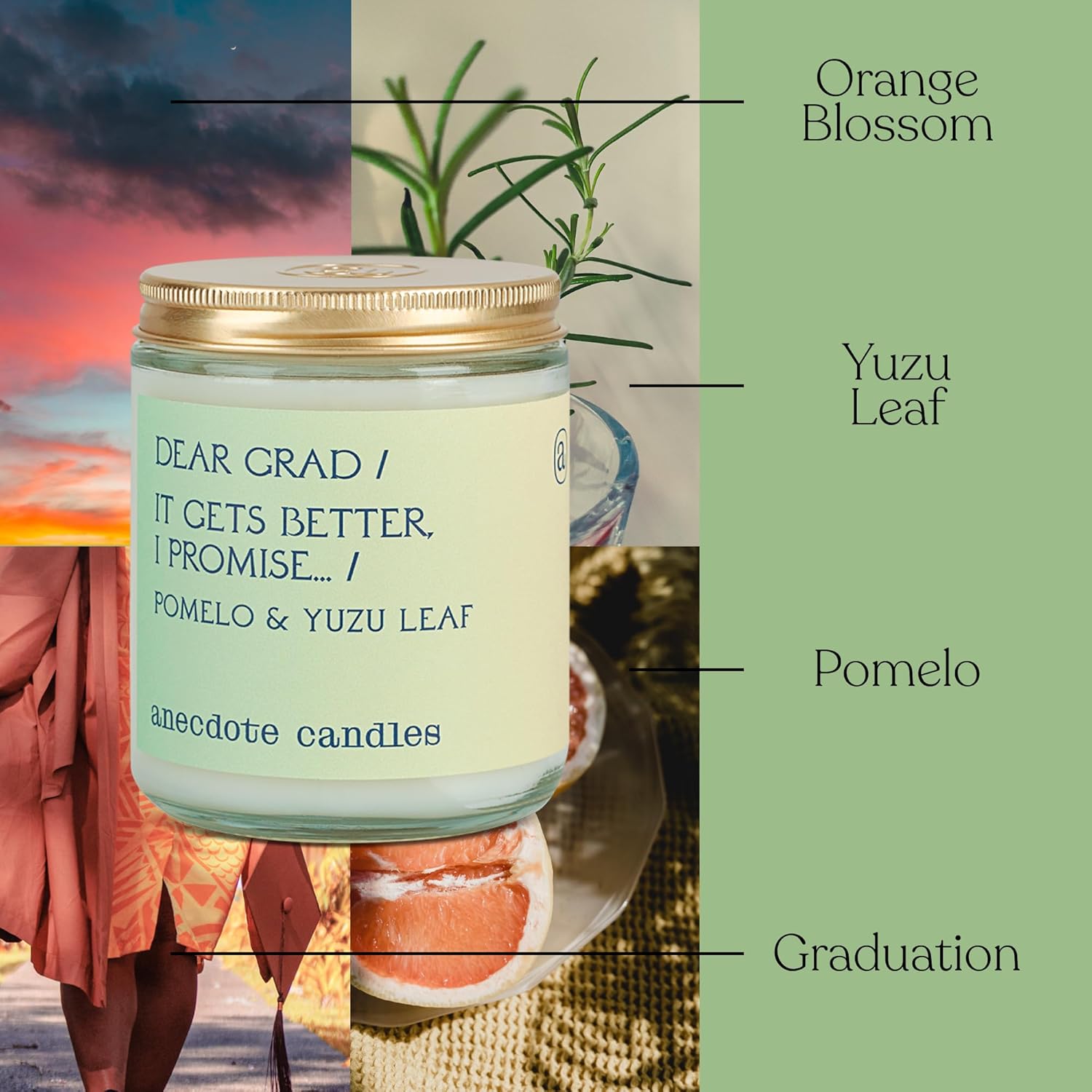 Anecdote Candles 'Dear Grad' Candle | Premium Hand Poured & Long Burning | Pomelo & Yuzu Leaf Scent | Phthalate-Free | Gifts for Graduation - 7.8 Oz