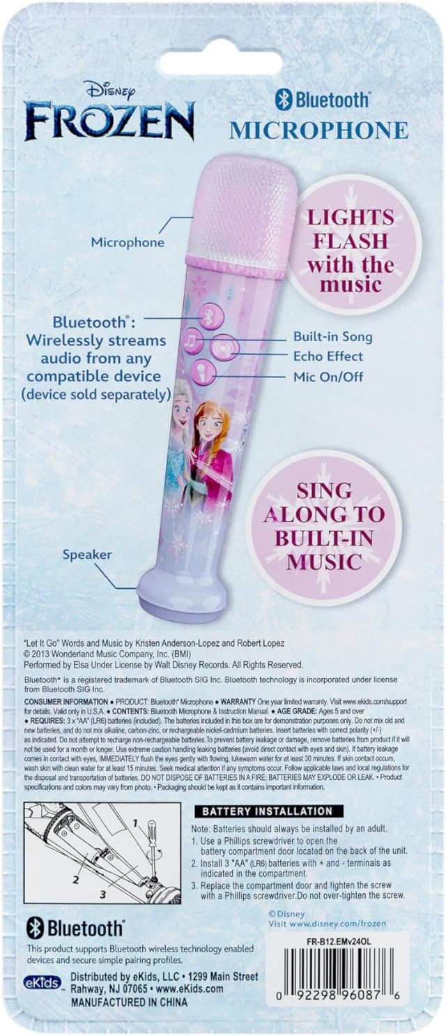eKids Disney Frozen Karaoke Microphone for Kids, Bluetooth Microphone Includes Built-in Music and Light Show, Designed for Fans of Frozen Toys