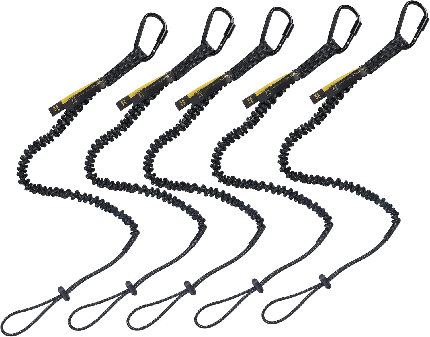 TRSMIMA Safety Tether Tool Lanyard - 5 Pack Stretch Strap Safety Fall Protection Tools Leash with Screw Lock Carabiner Clip