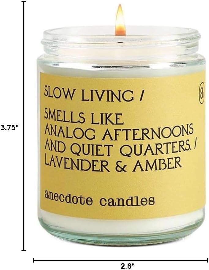 Anecdote Candles 'Slow Living' Coconut Soy Wax Candle | Premium Hand Poured & Long Burning | Lavender & Amber Scent | Phthalate-Free | for Home, Office, Gift - 7.8 Oz