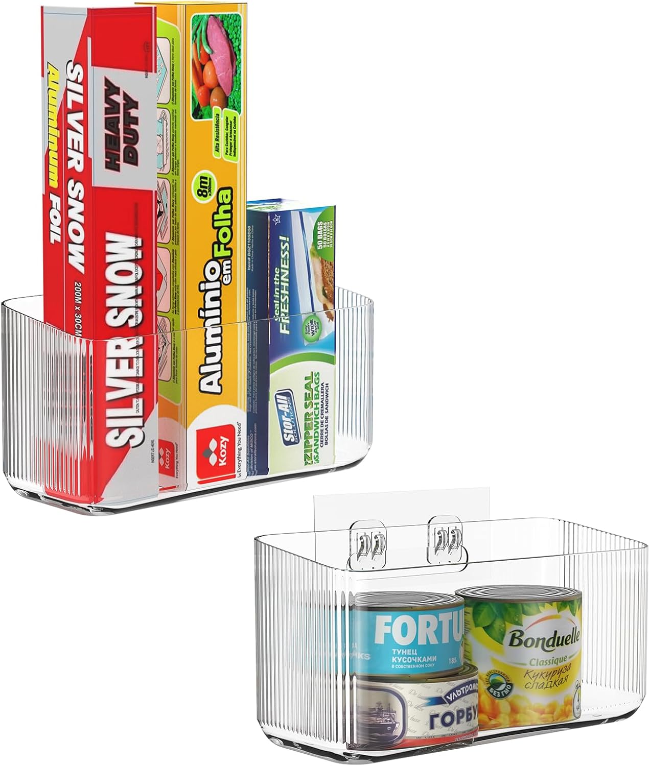 2 Paquete Organizadores de Puerta de Armario Plásticos, Soportes de Envoltura para Organizadores de Cocina, Montaje en Pared sin Perforación para Envoltura de Aluminio, Envoltura Adhesiva y Bolsas de Comida, Transparente