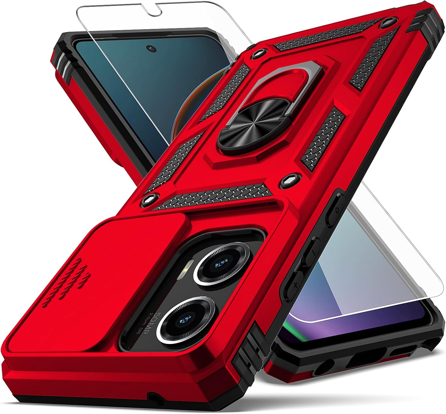 for Moto G Stylus 5G 2024 Case,with Camera Lens Cover HD Screen Protector,[Military Grade] Car Mount Kickstand Shockproof Protective Case for Motorola Moto G Stylus 5G 2024, Red