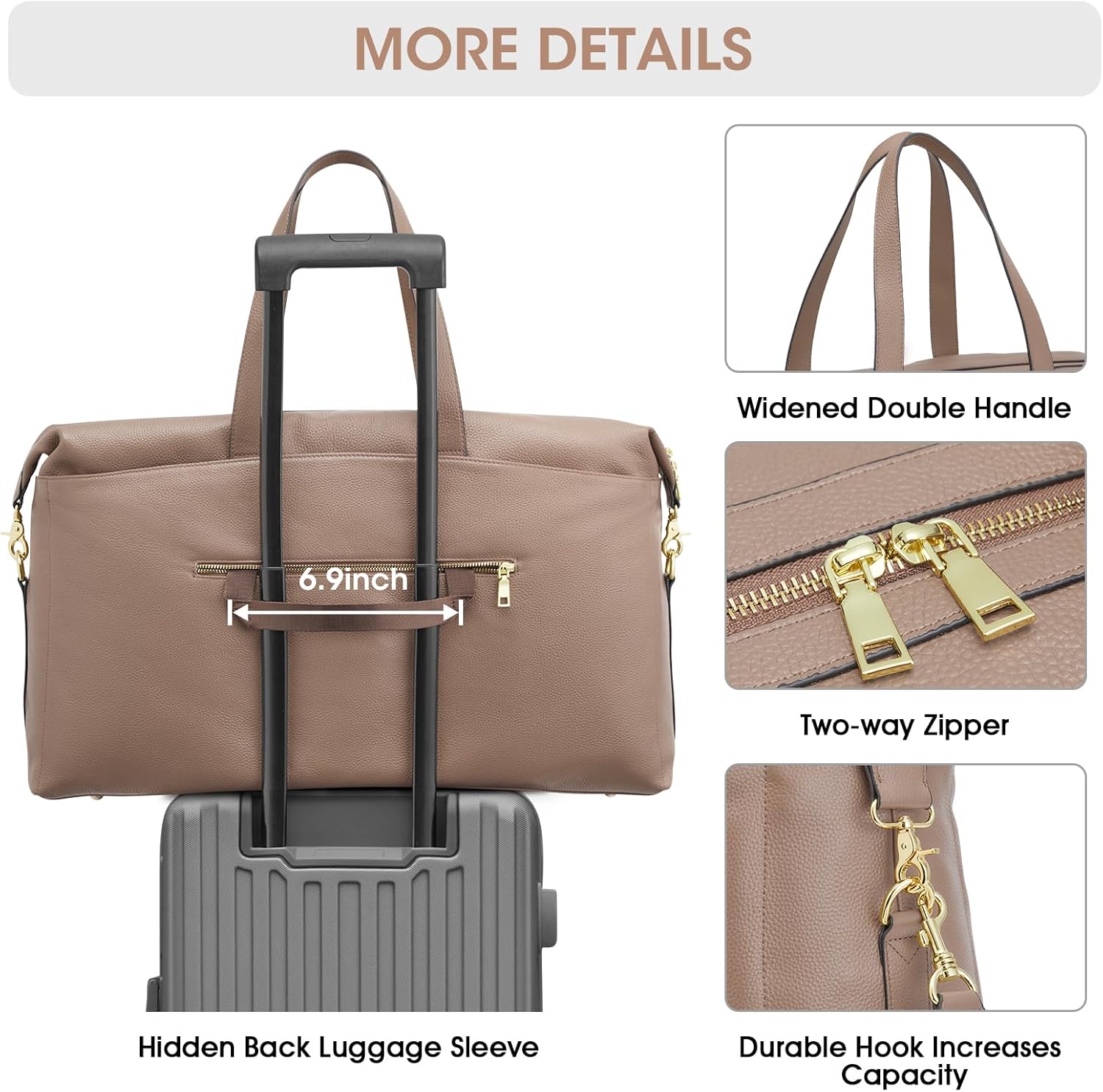 Easy To Carry: This overnight bag for women comes with a detachable shoulder strap that can use as a handbag or crossbody bag. A luggage sleeve that slides into your suitcase handle for easy travel
