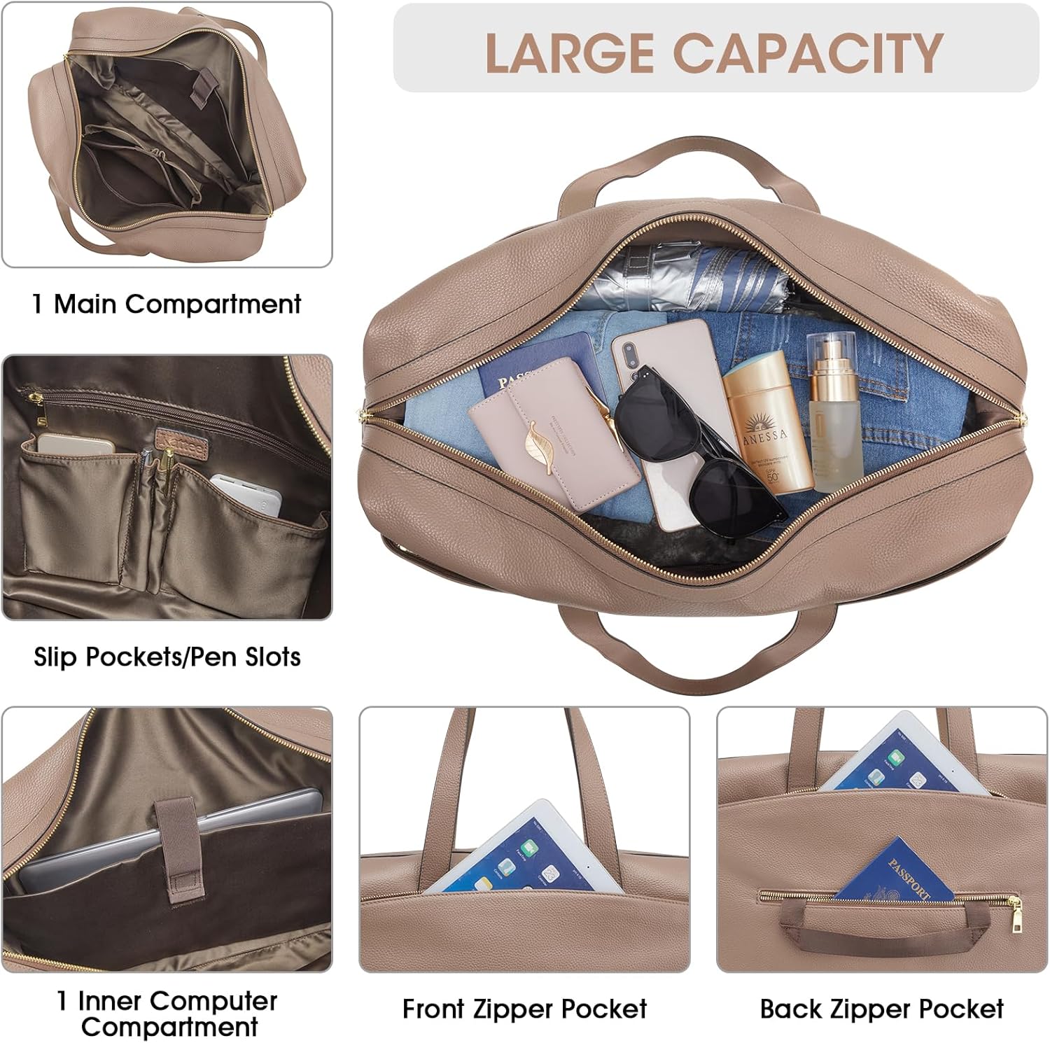 Kattee Weekender Bags for Women Leather Travel Bags for Women Duffle Overnight Duffel Carry on Large Tote Bag