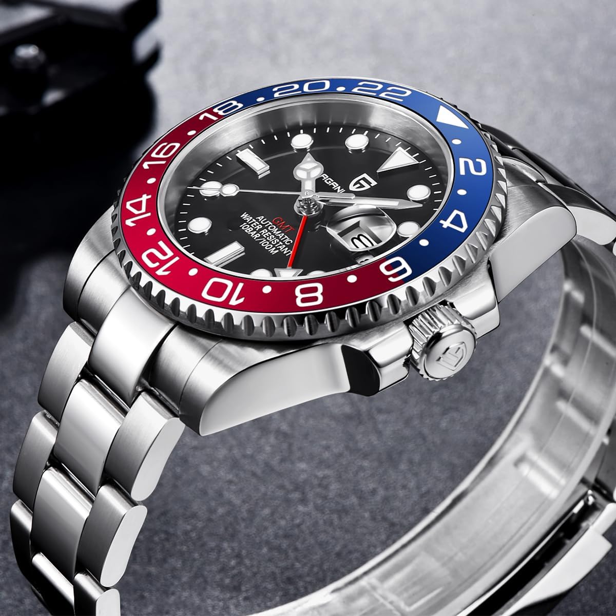 Pagani Design GMT Automatic Mechanical Men's Watch Rotating Ceramic Bezel Stainless Steel Watch with Date Function Men's Sport Watch