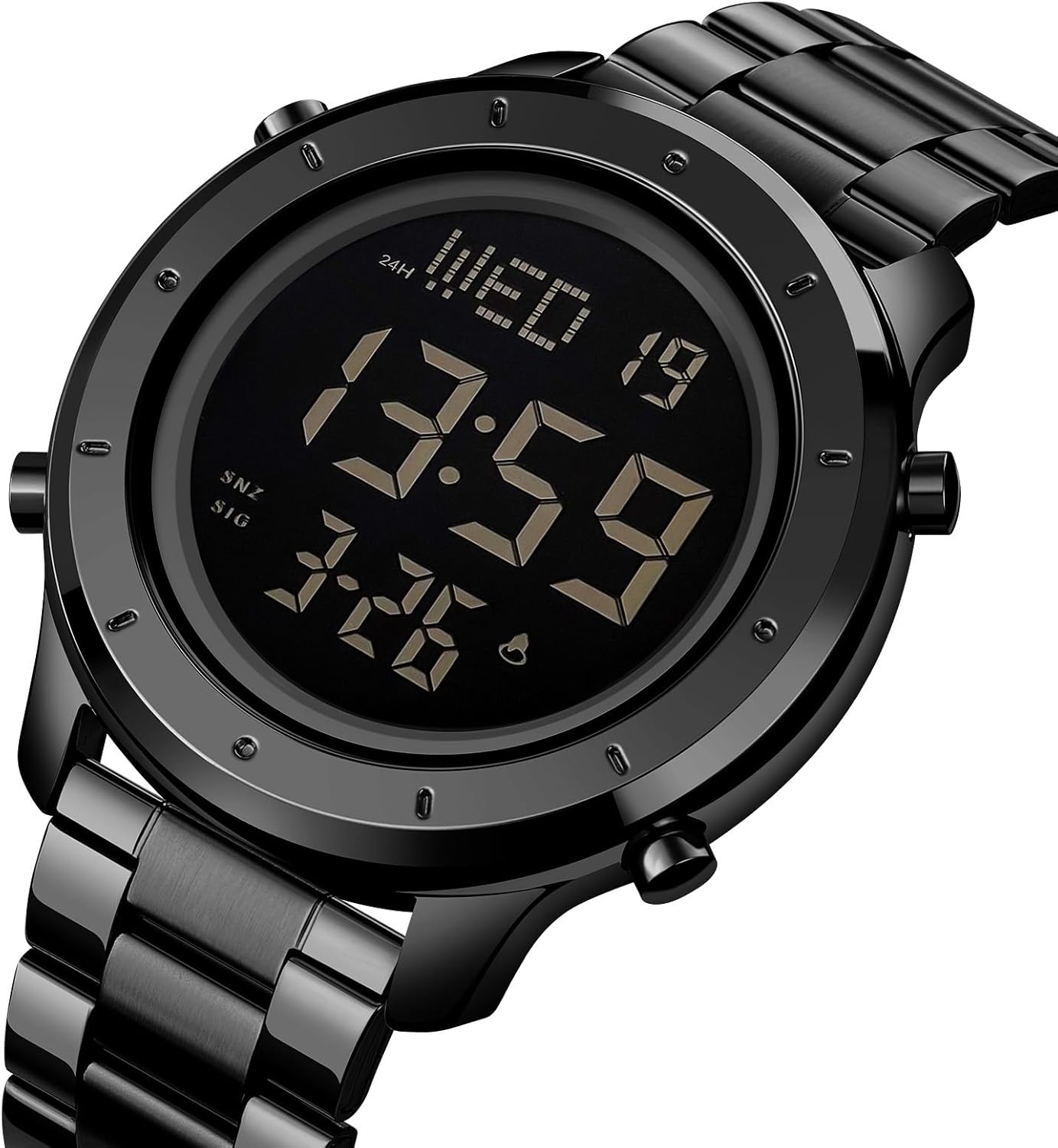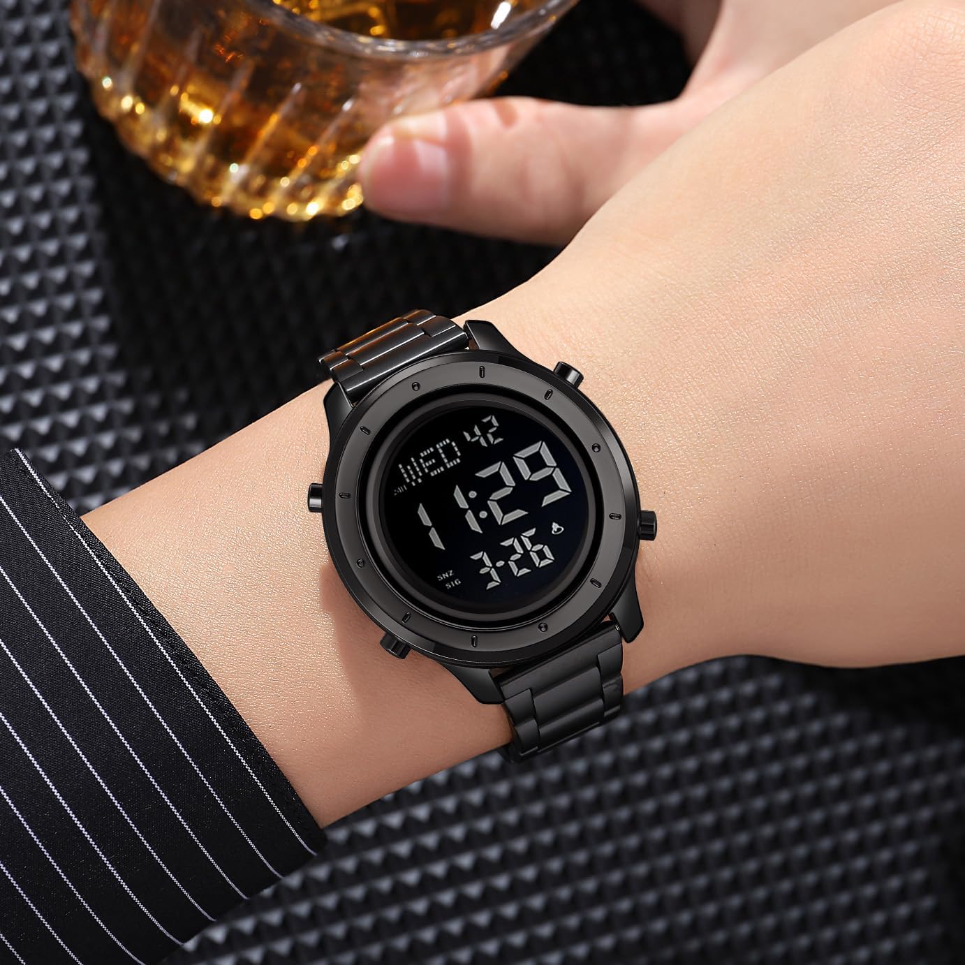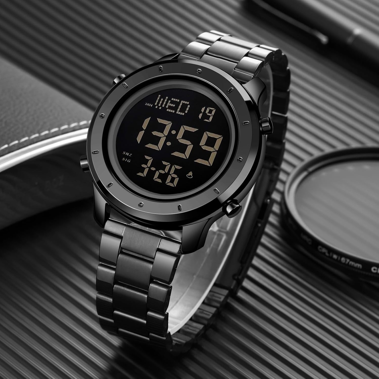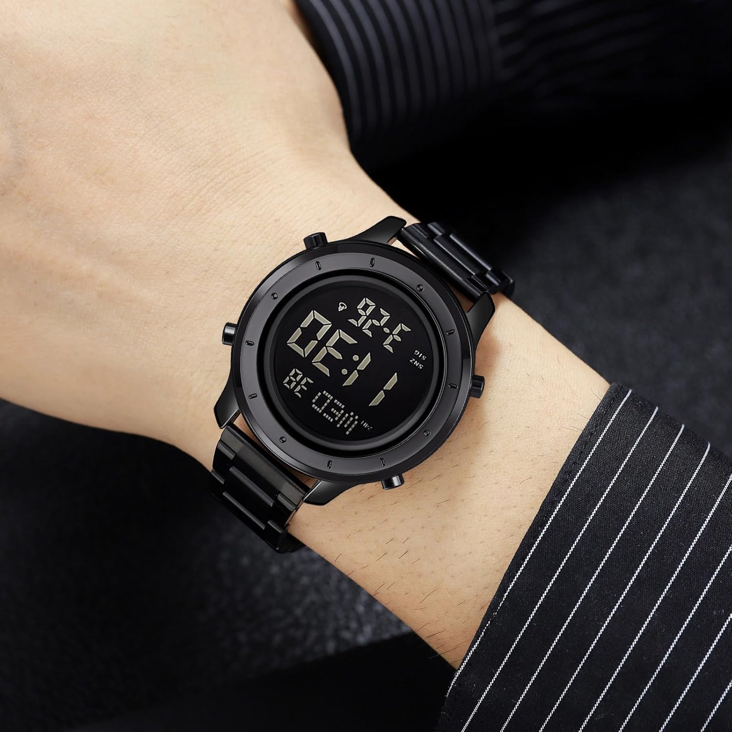 Mens Watch for Men Digital Watch Men's Wrist Watches LED Minimalist Stainless Steel Waterproof Stopwatch