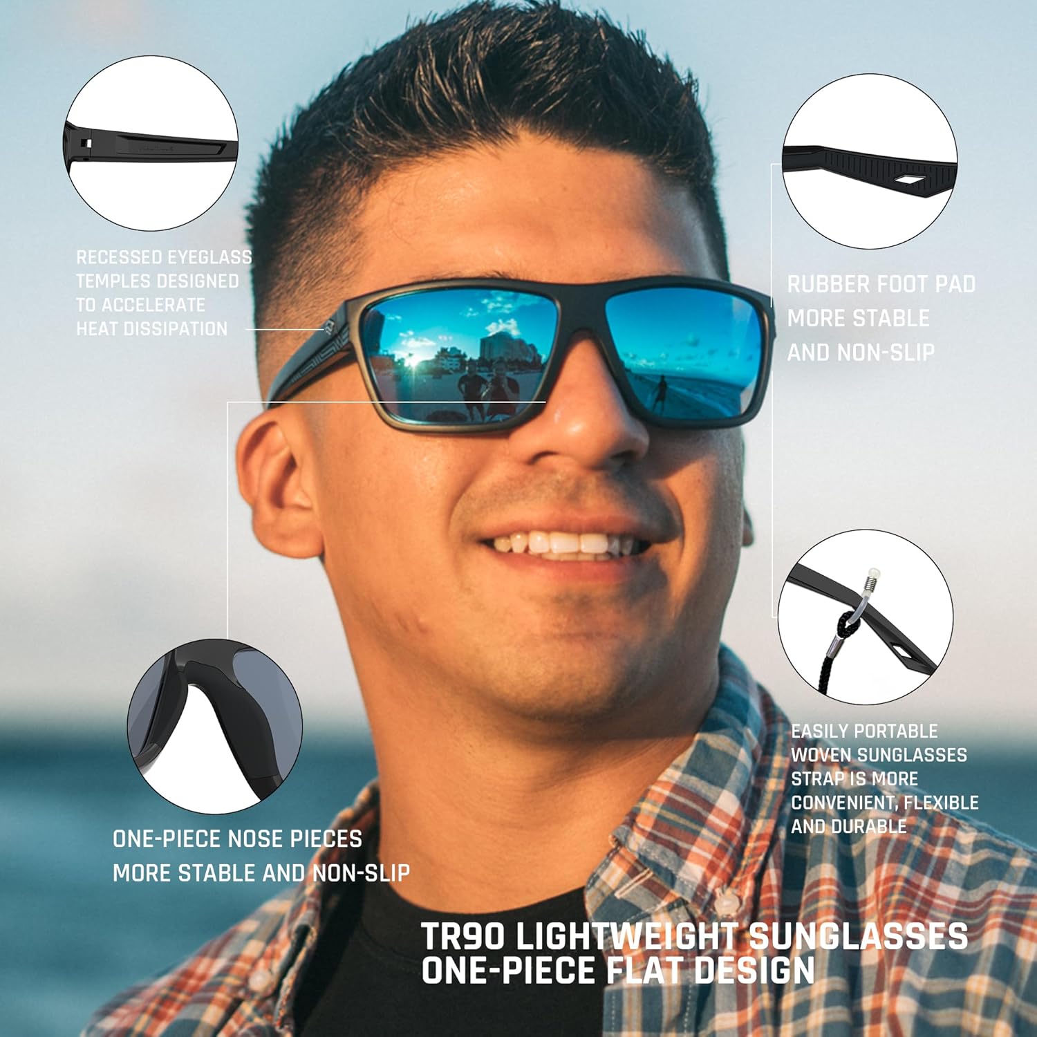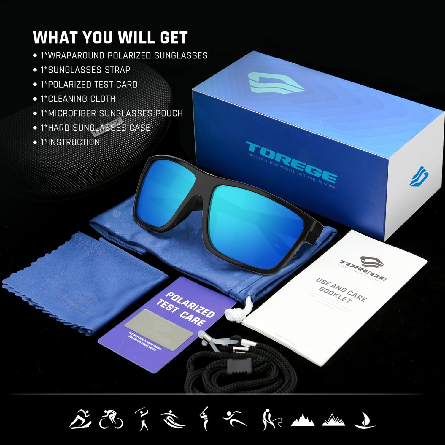 POLARIZED SUNGLASSES KIT>>> Package Includes 1x polarized sunglasses for womens and men, 1x sunglasses strap, 1x microfiber sunglasses pouch, 1x cleaning cloth, 1x polarized test card and 1x instruction.
