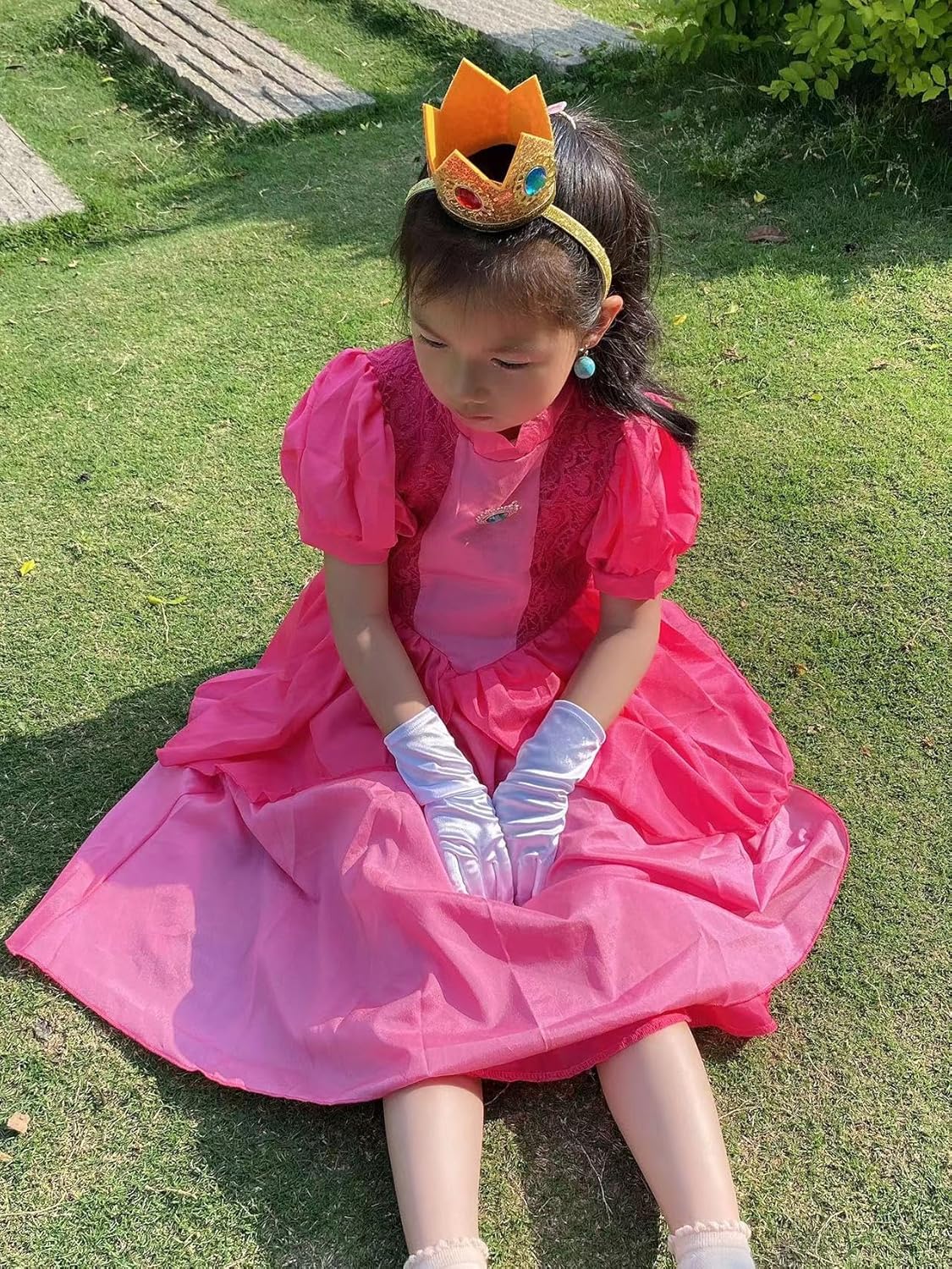Princess Peach Cosplay Costume Dress Girls Princess Peach Dress With Crown Gloves and Earrings Party Dress Up
